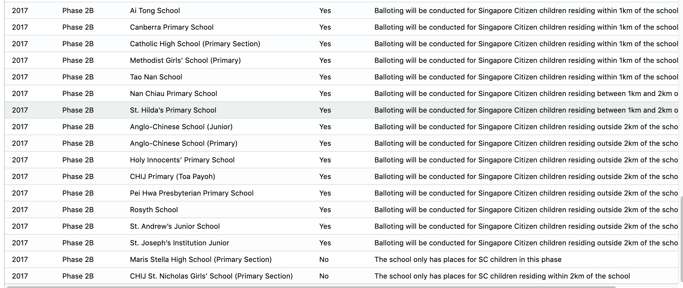 这个网站只有2A2的taken的数据没有2A2的报名数据,我现在就是根据kiasu的百分比倒算回来的。话说回来,2A1和2A2需要抽签是2015年以后才开始的,而且其实发生的学校不是很多,倒也不难改。
