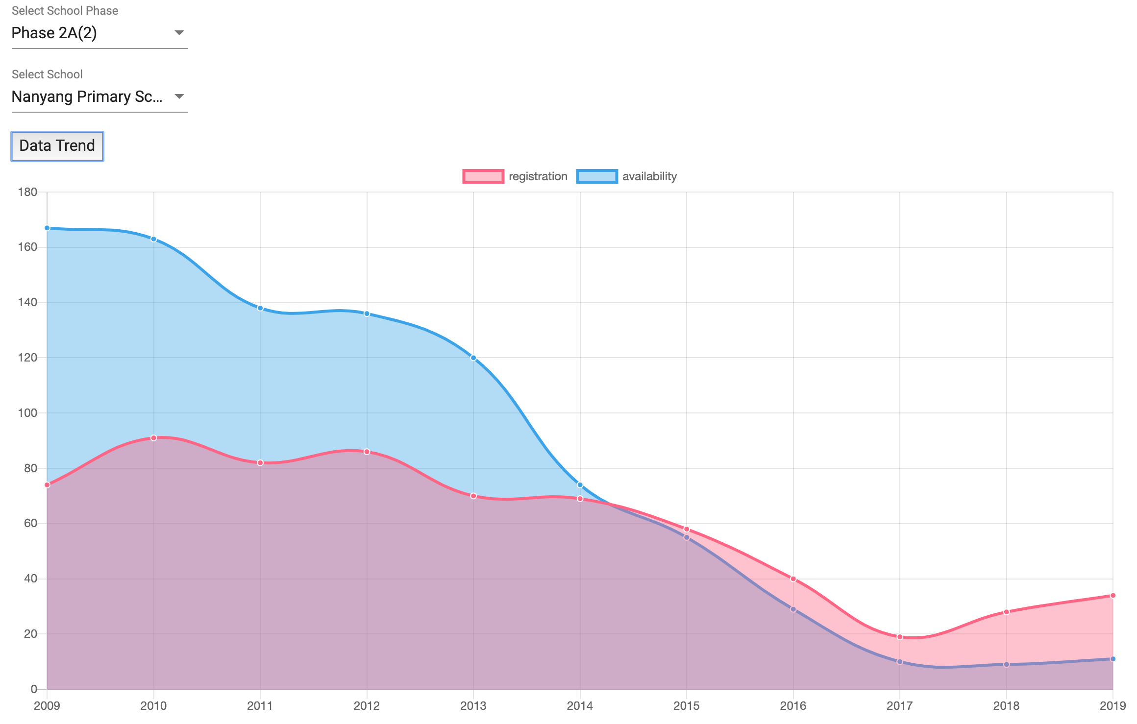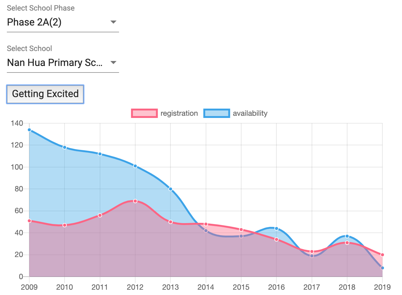 是的图表上能看到学校报名数据的变化了,我觉得图表很直观,放了School analysis模块,蓝色代表availability,红色代表家长们争夺的报名人数