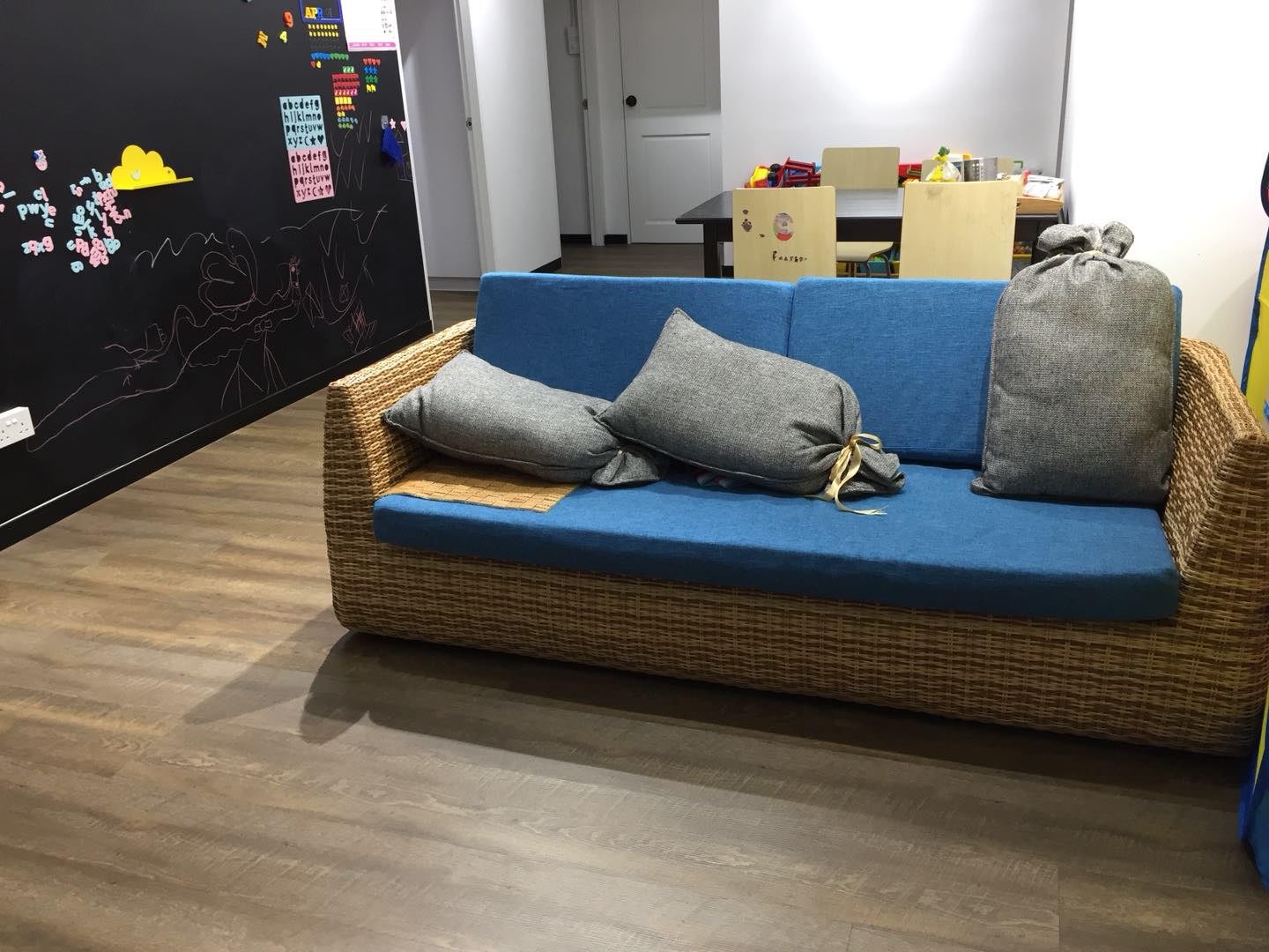 沙发还在海上漂的时候就有点后悔了,因为没有沙发一片空旷的感觉好爽,小孩子地上随便滚,呵呵,不过这张沙发也不大就是了,幸好没买大大的那种L型沙发,家里东西少一点好