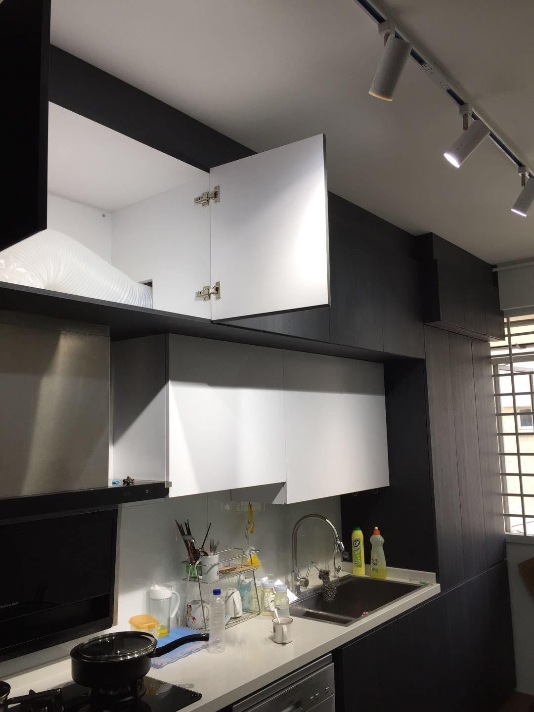 楼主可以多解释一下排气吗,我家也在想怎么做。之前在网上看到有人做上面的橱柜时有一条通路通道窗户那里,油烟可以从窗户出去,但是不知道细节怎么做。你是找装修商做的吗?