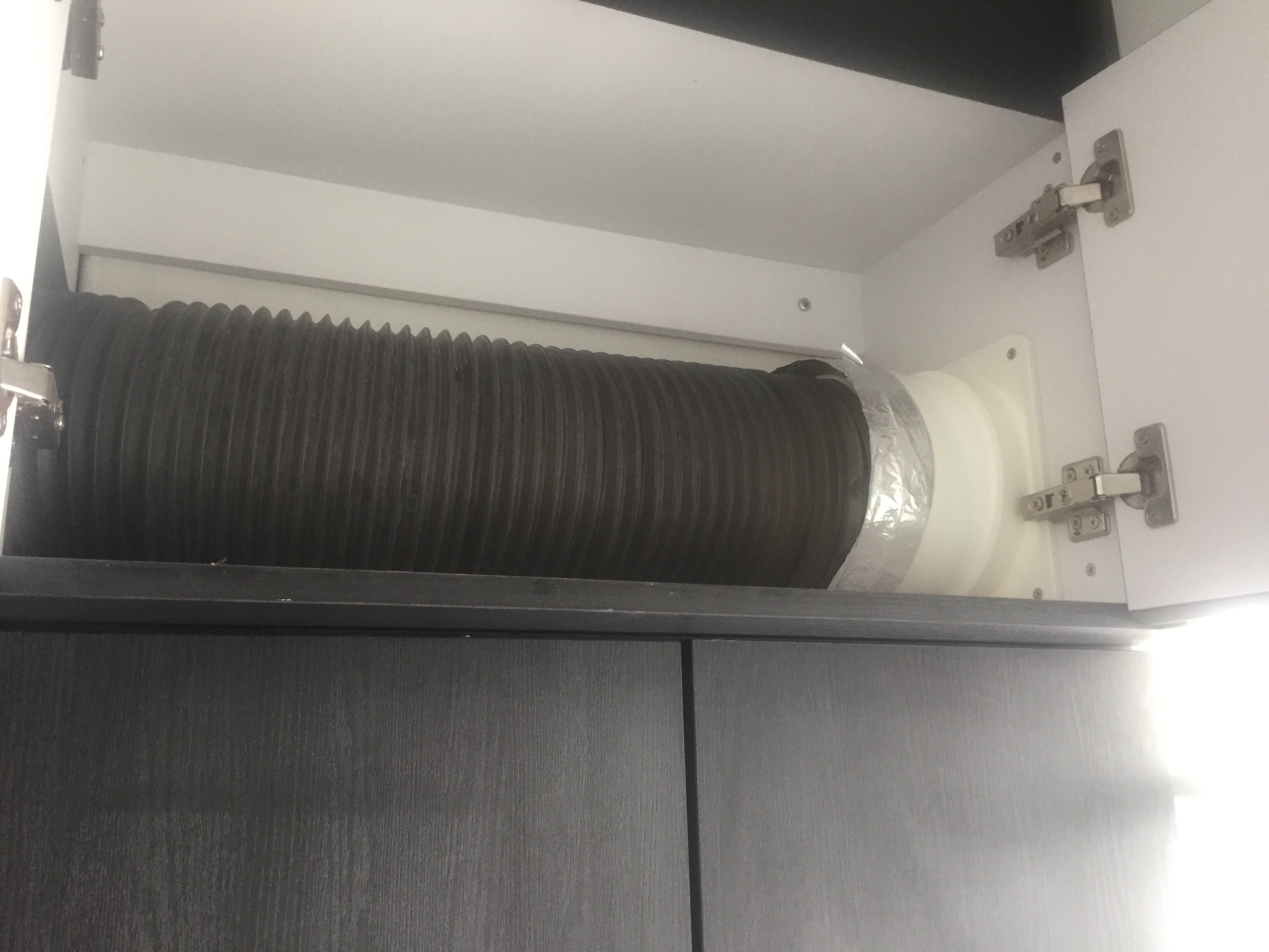 再贴一张窗户旁边的橱柜突出一角,就是为了放那根管子,不过我家是顶楼,排出去不会污染到别家衣服,如果不是顶楼可能还要考虑一下邻里关系问题哦,姐帮你到这里了……
