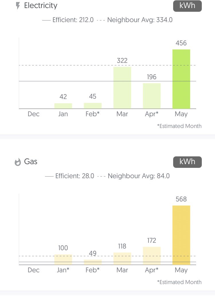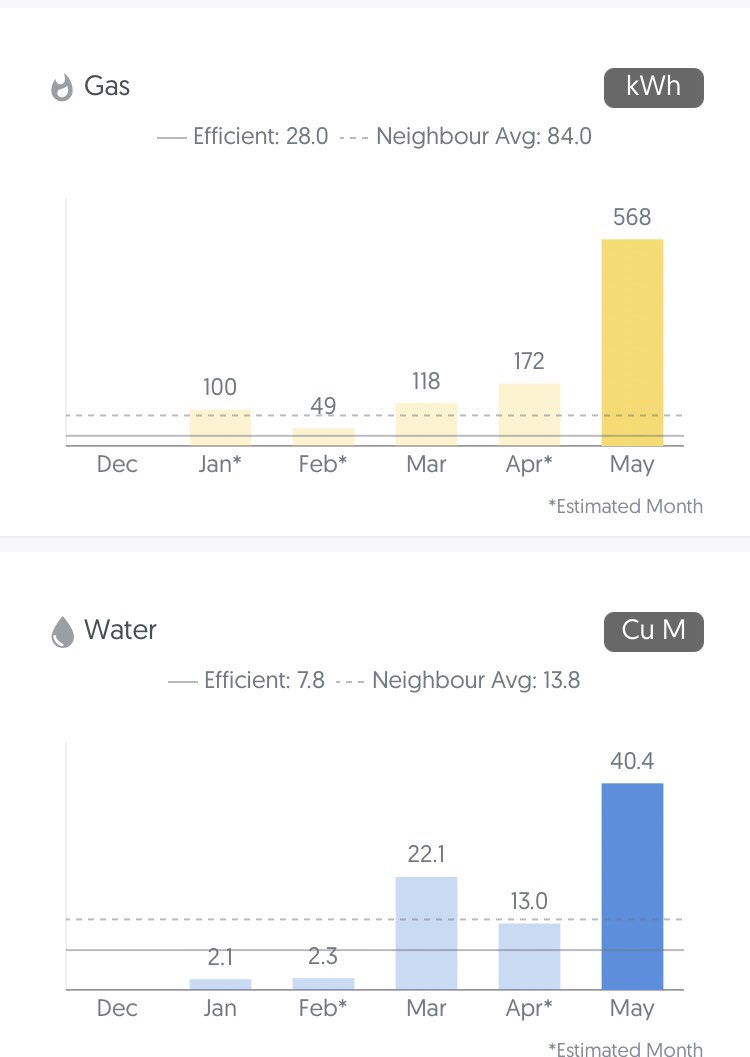 用电用水量还好因为四月估读是不准的,四月五月平均下来的数值和三月没差很多只是略高。gas的确增加比较多,最近突然做饭多了吗