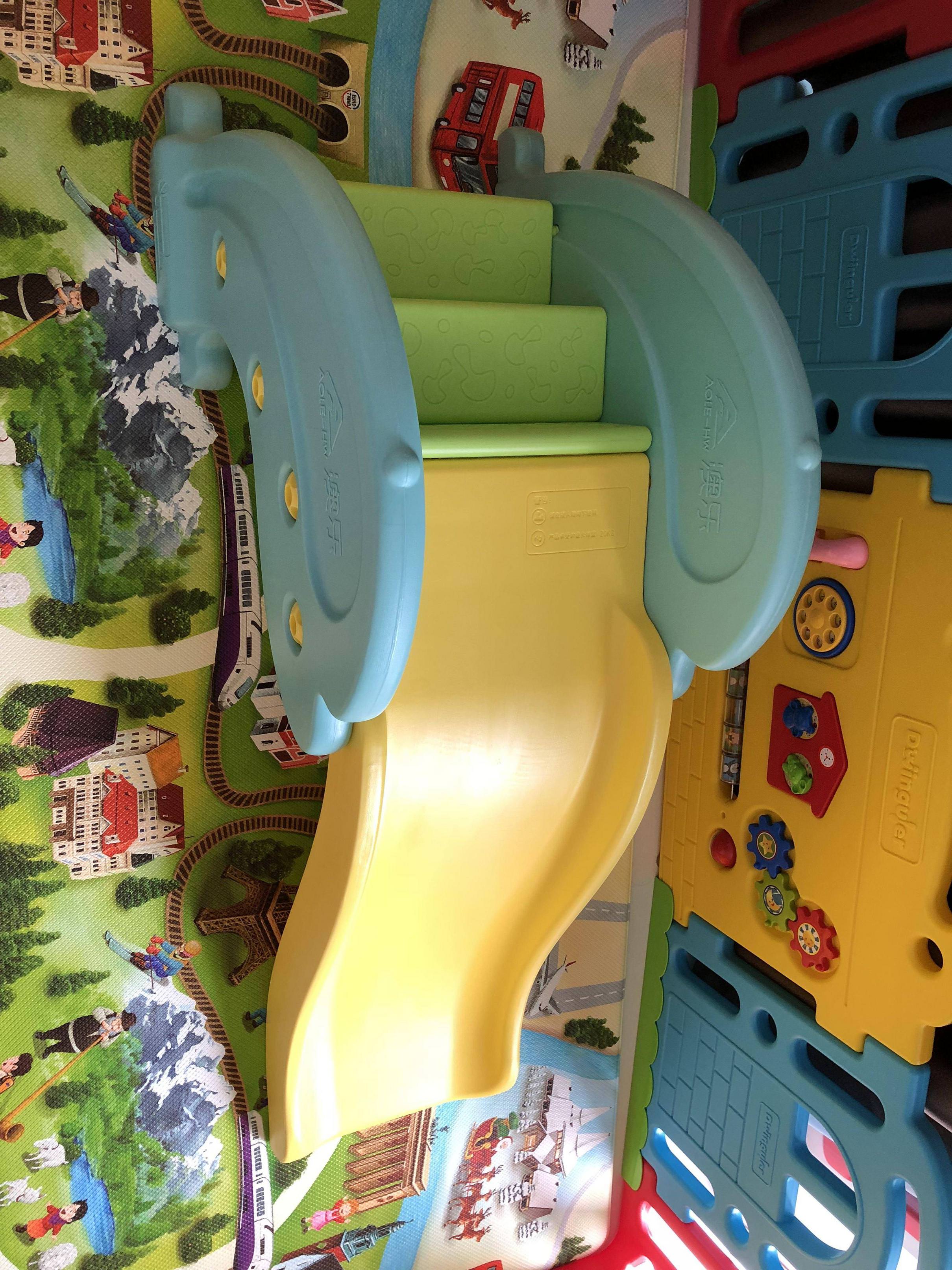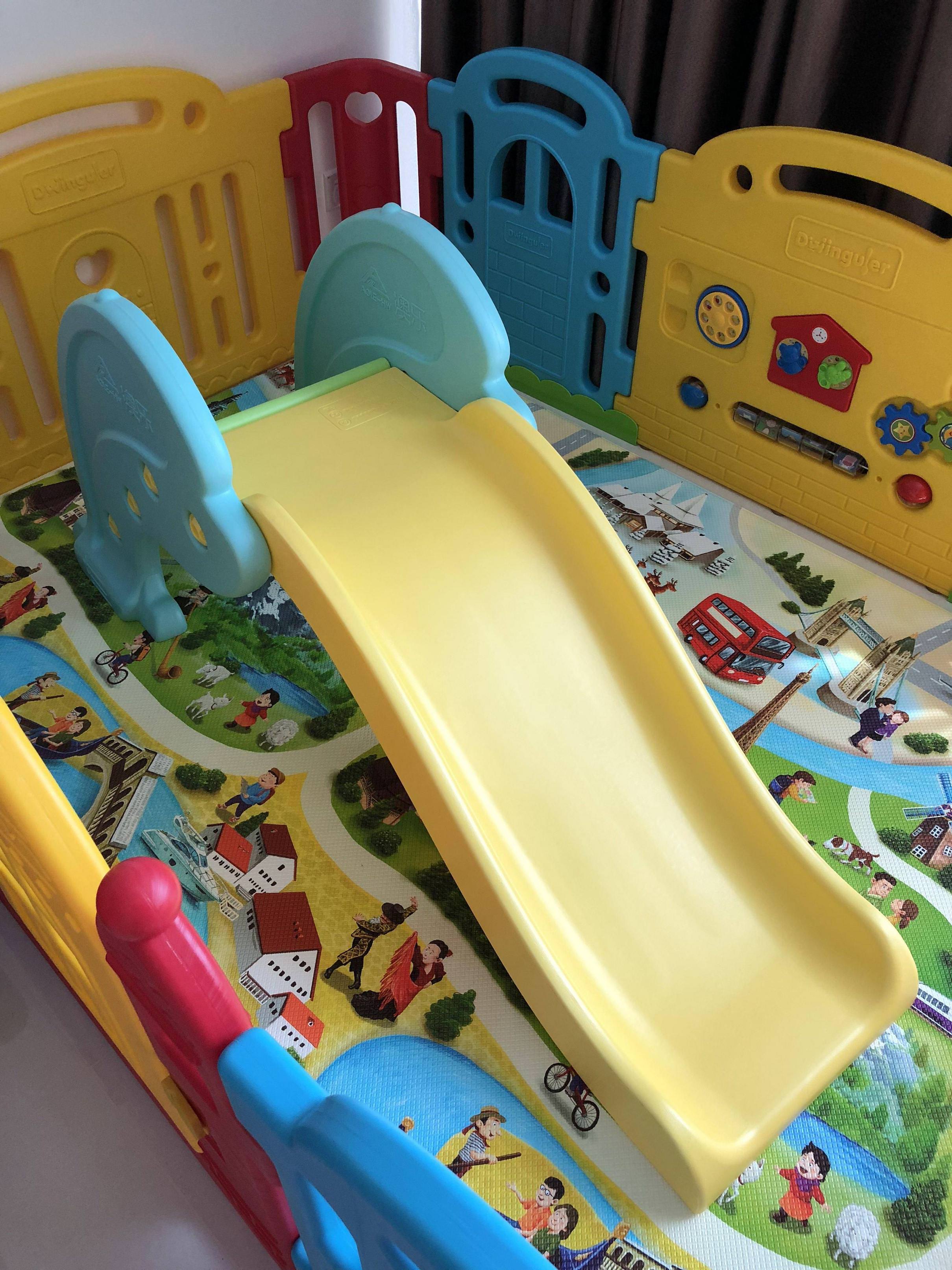 围栏跟我家的一样看看滑梯去,正好我娃也爱玩