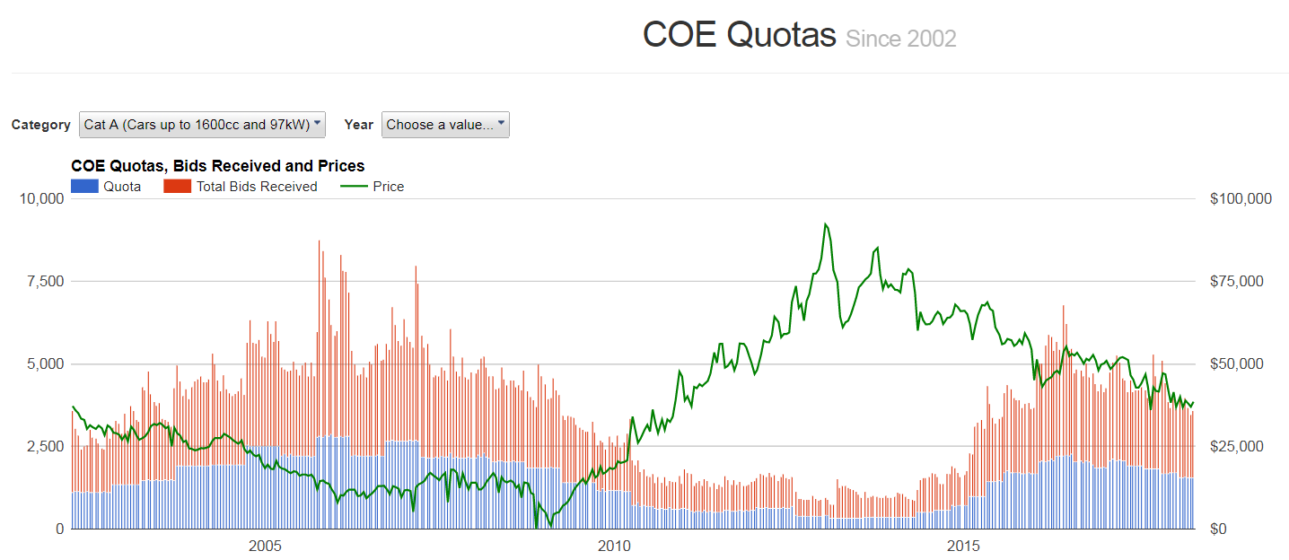 dayudu • • 30335 次浏览影响COE价格的因素很多,COE的供应量,经济形势,公共交通的便利性,共享汽车,政府政策调整等等都会影响COE的价格。经济形势的影响很好理解,2009年经济危机的时候COE曾经到过2块钱。公共交通的便利性会使一部分人放弃拥车。Uber,Grab,Hitch等的出现也会使没有拥车也有相对比较便利的出行。政府政策方面,调个贷款比率,改一下碳排放scheme,修改车辆增长率等等,对COE也都是大影响。