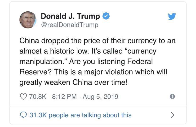 本来还怕因为这个被贸易和关税制裁,现在贸易战都打了一年多了,还在乎这个?不操纵下才是不负责任吧