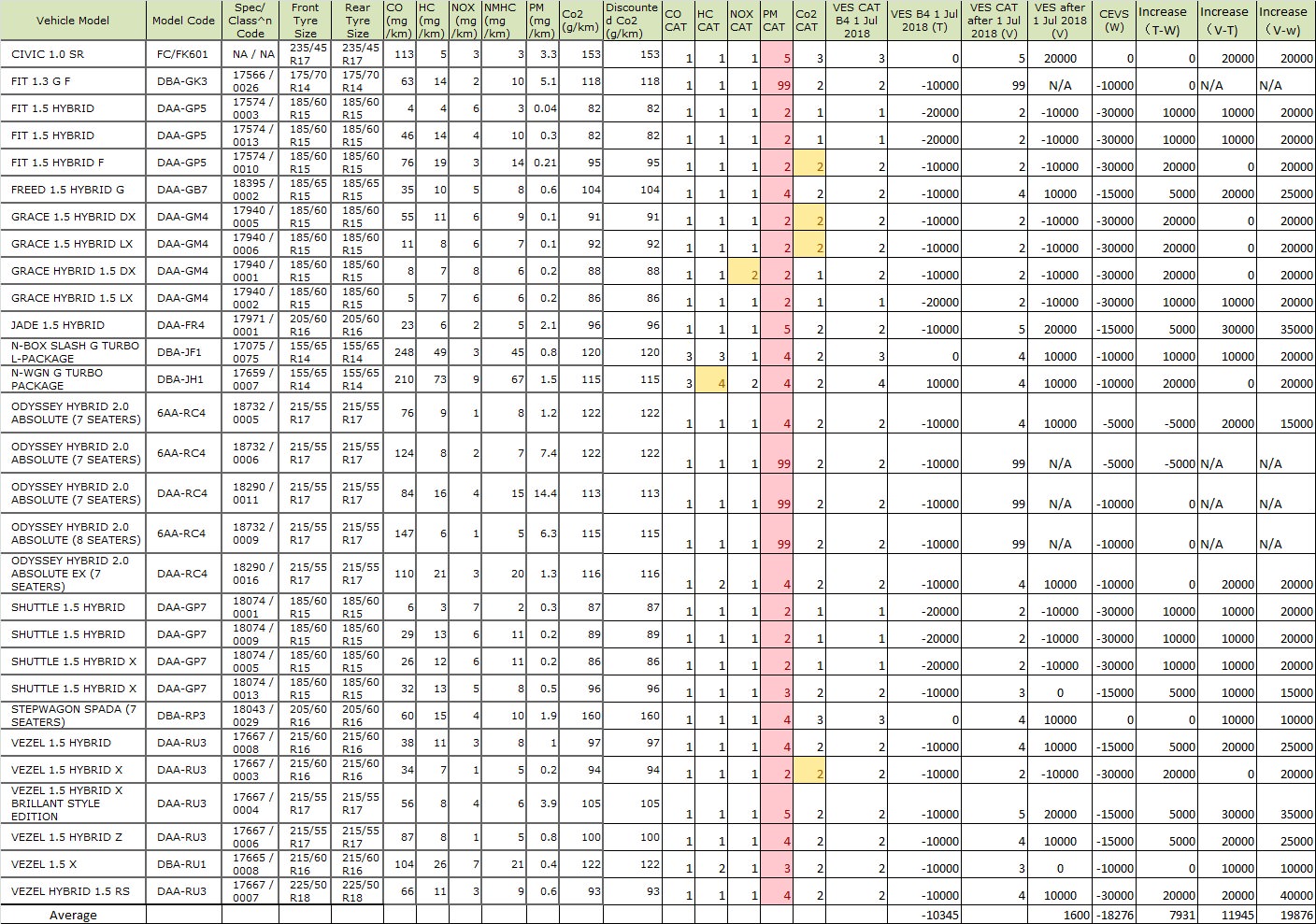 直接上数据如图三。 以Honda 平行进口的车型做为比较。CEVS平均值为折扣18276, 2018年1月后VES平均值为折扣10345, 2018年7月后VES平均值为罚款1600. 2018年1月比之前平均每个车型成本上涨7931, 2018年7月平均每个车型成本再上涨11945。