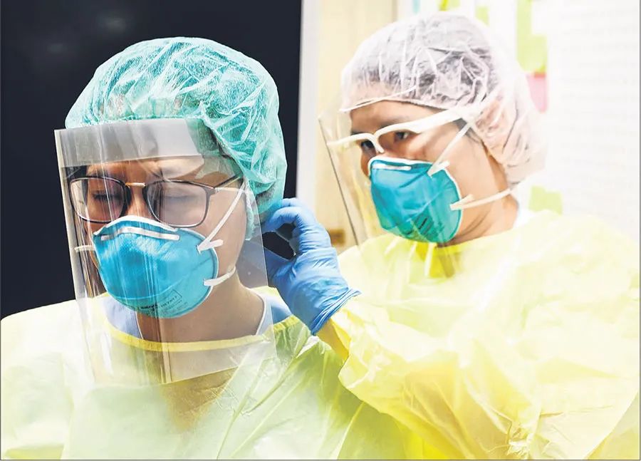 至于早前被分配到面罩的非医疗前线人员,如保安人员、清洁员工和宿舍业者,同样必须戴上口罩。同时戴口罩和面罩更安心。