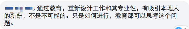 通过教育,重新设计工作和其专业性,有吸引本地人的新酬,不是不可能的。只是如何进行,教育部可以思考这个问题。