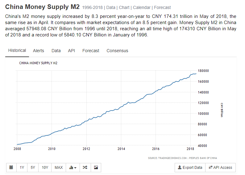 天朝印钞量M2