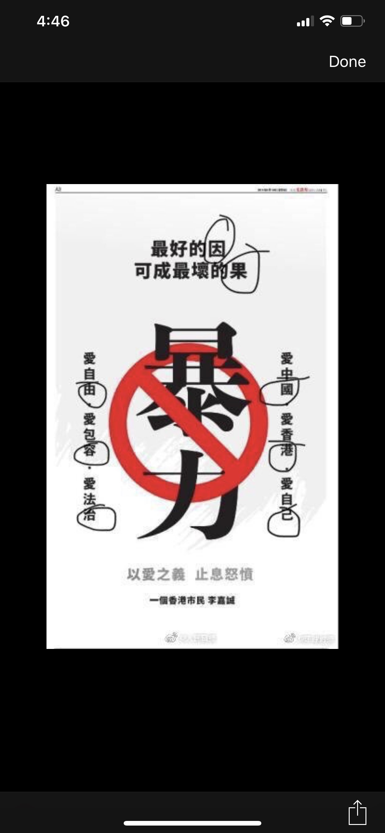 HK网民已经破解广告中的密语啦以爱之义止息怒愤 - 8 个字