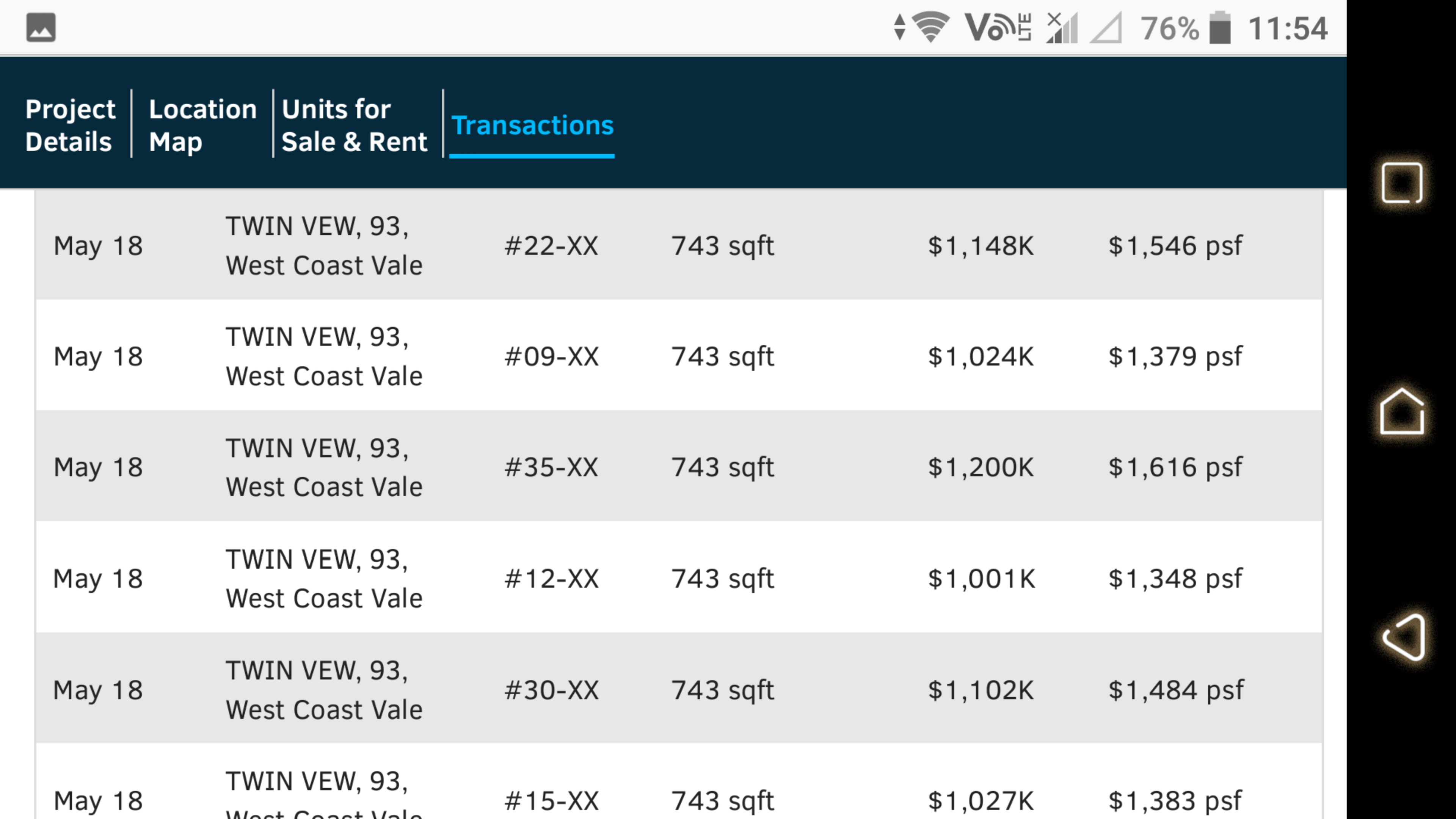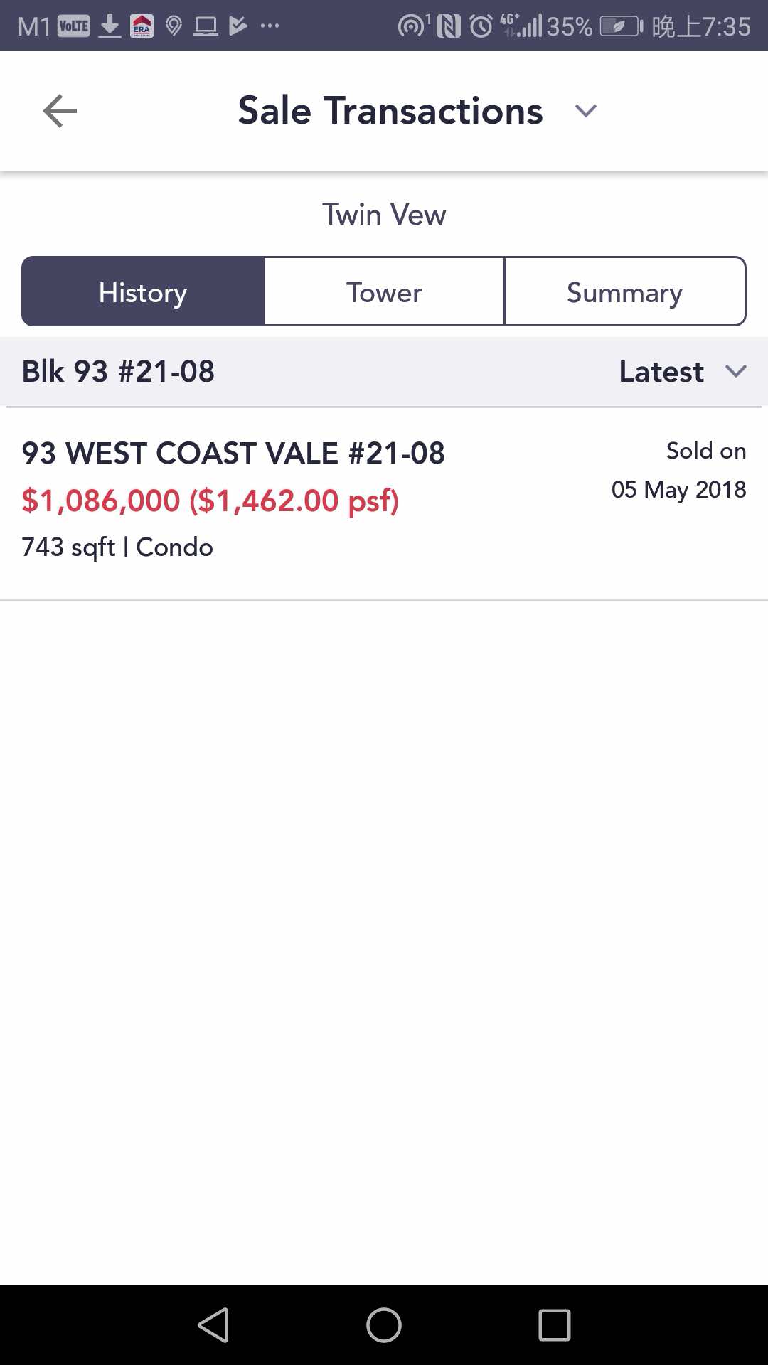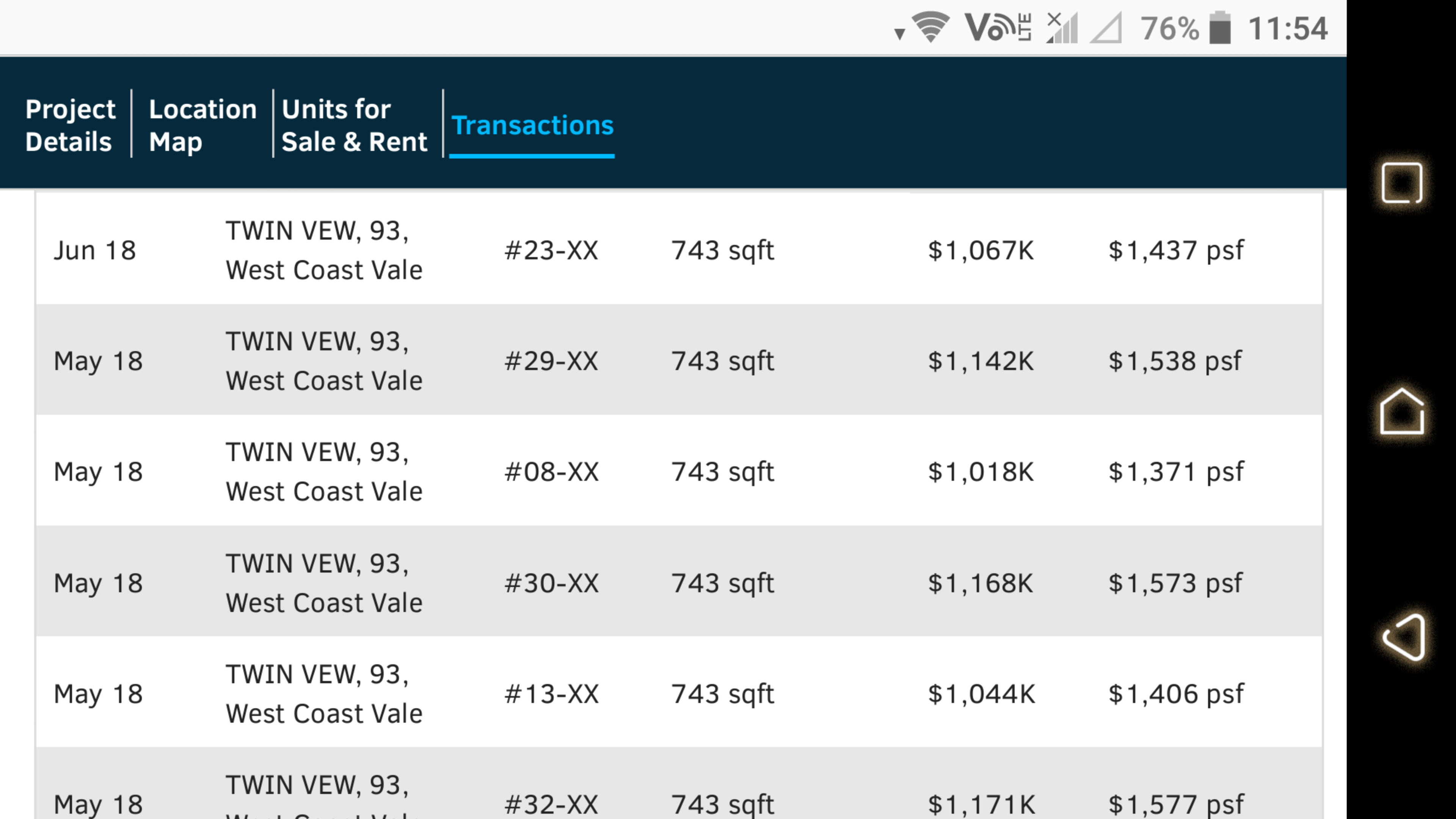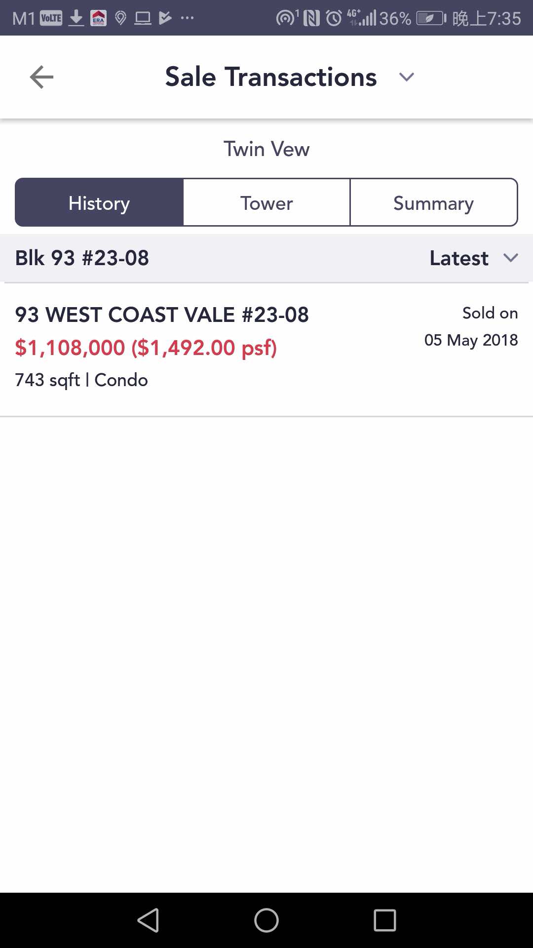 SPH_Wuvist • • 29666 次浏览上SRX查交易价格,743尺的B4户型单位,22楼在五月份成交是1546新币一尺,23楼六月份成交就跌成1437新币一尺。