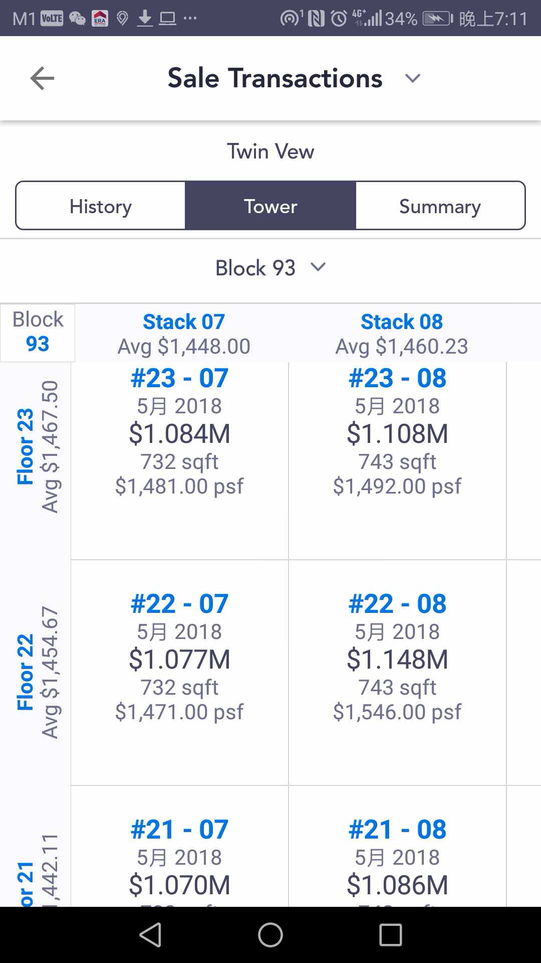 从你的图上看,同样在5月18号30楼有两笔交易,都是743 sqft,尺价分别1484 和 1573。