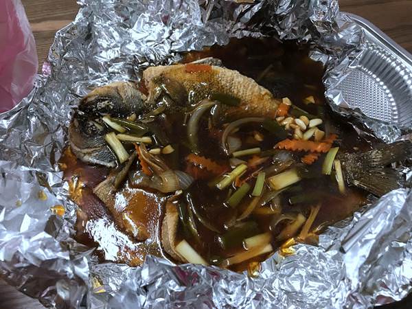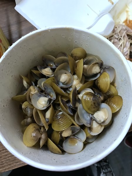 晚饭也可以在立川渔场吃各种水产。 我听了民宿老板的介绍,打包了一份炒蚬壳, 又想到我们在新加坡很少吃到河鱼, 加上又是人家的招牌菜, 又买了一条红烧贵妃鱼, 可是红烧的贵妃鱼是油炸过的。无论什么鱼,油炸之后就不会好吃了。我一看就没有了胃口。蚬壳还是蛮好吃的。