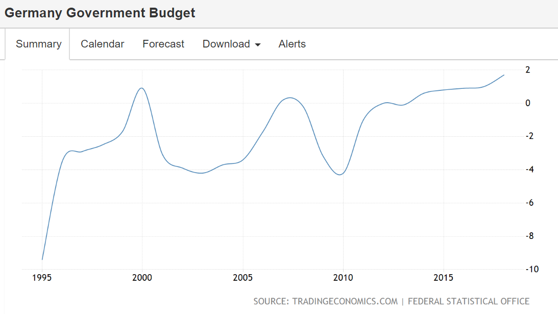 作为对照,德国是我心目中有财政纪律的欧洲国家,所以没什么赤字问题,可持续性高。