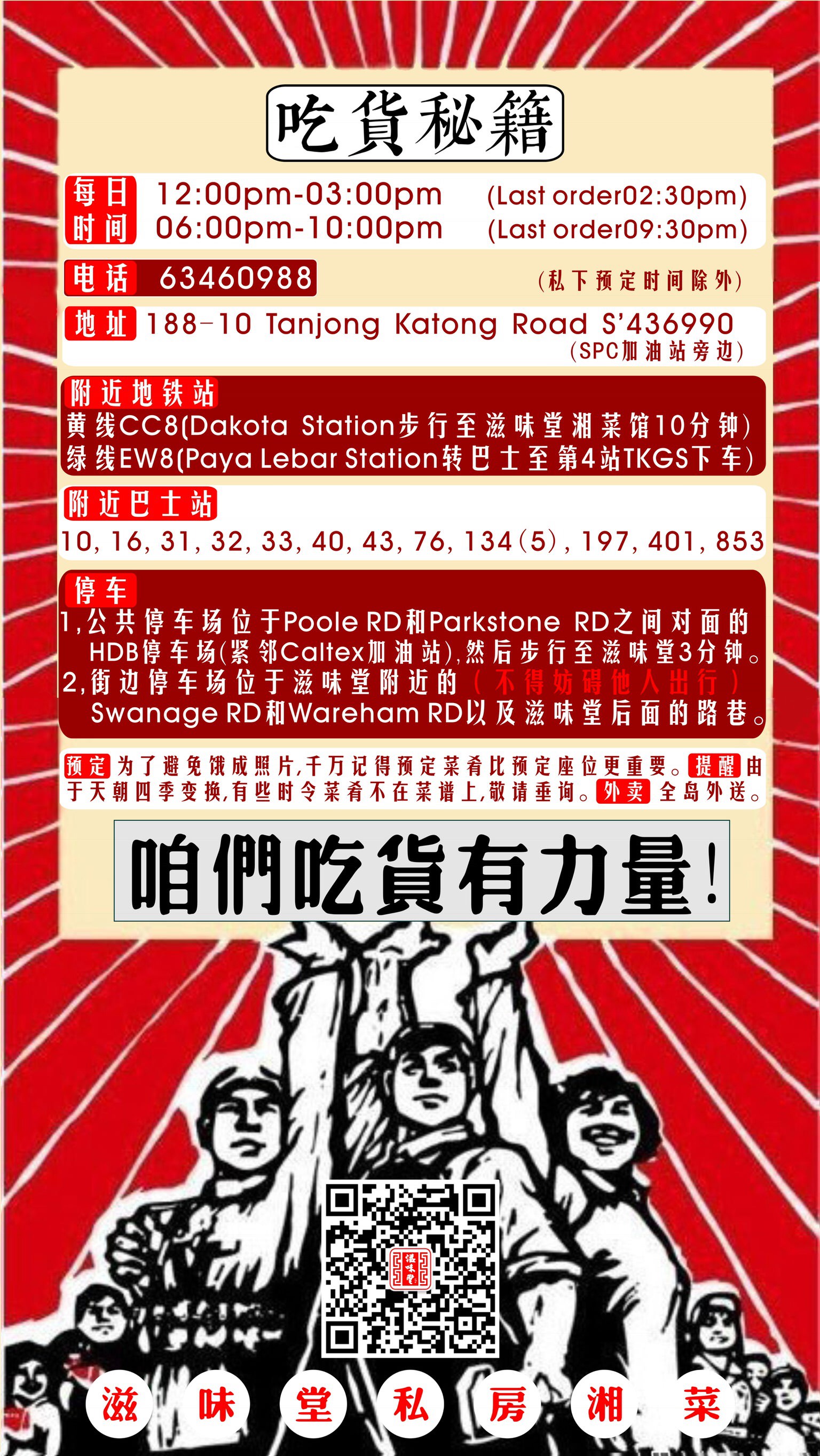 简直太好吃了,坐标加东,全岛外卖。每天看老板发帖都想屏蔽他,但是贱贱的每周至少吃一次...最好提前一天预定,不然有些菜订不到。