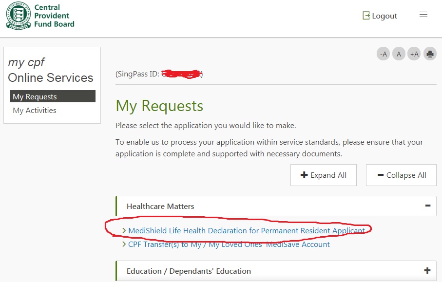 CPF health declaration 还是 "Only the PR applicant is able to..."