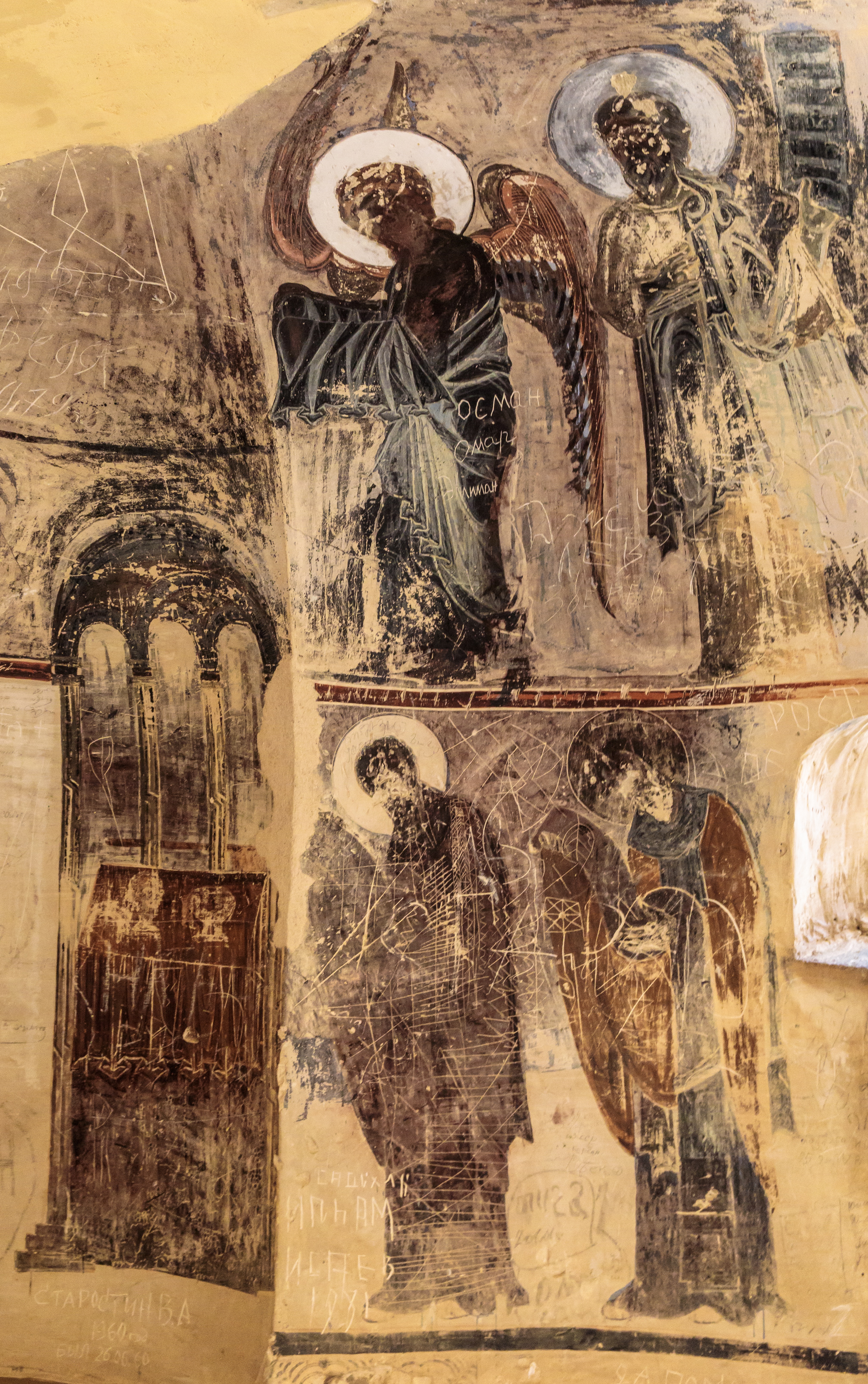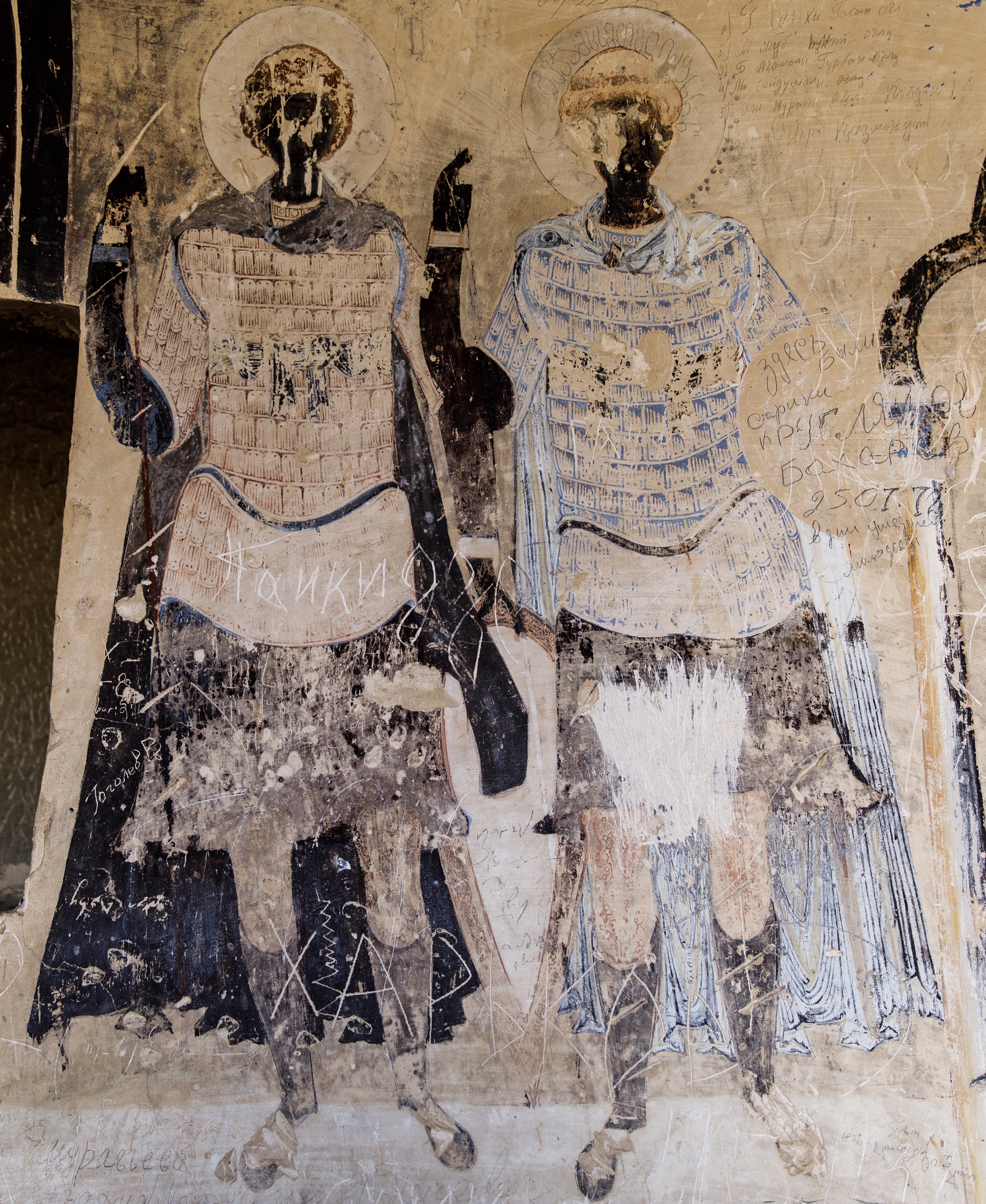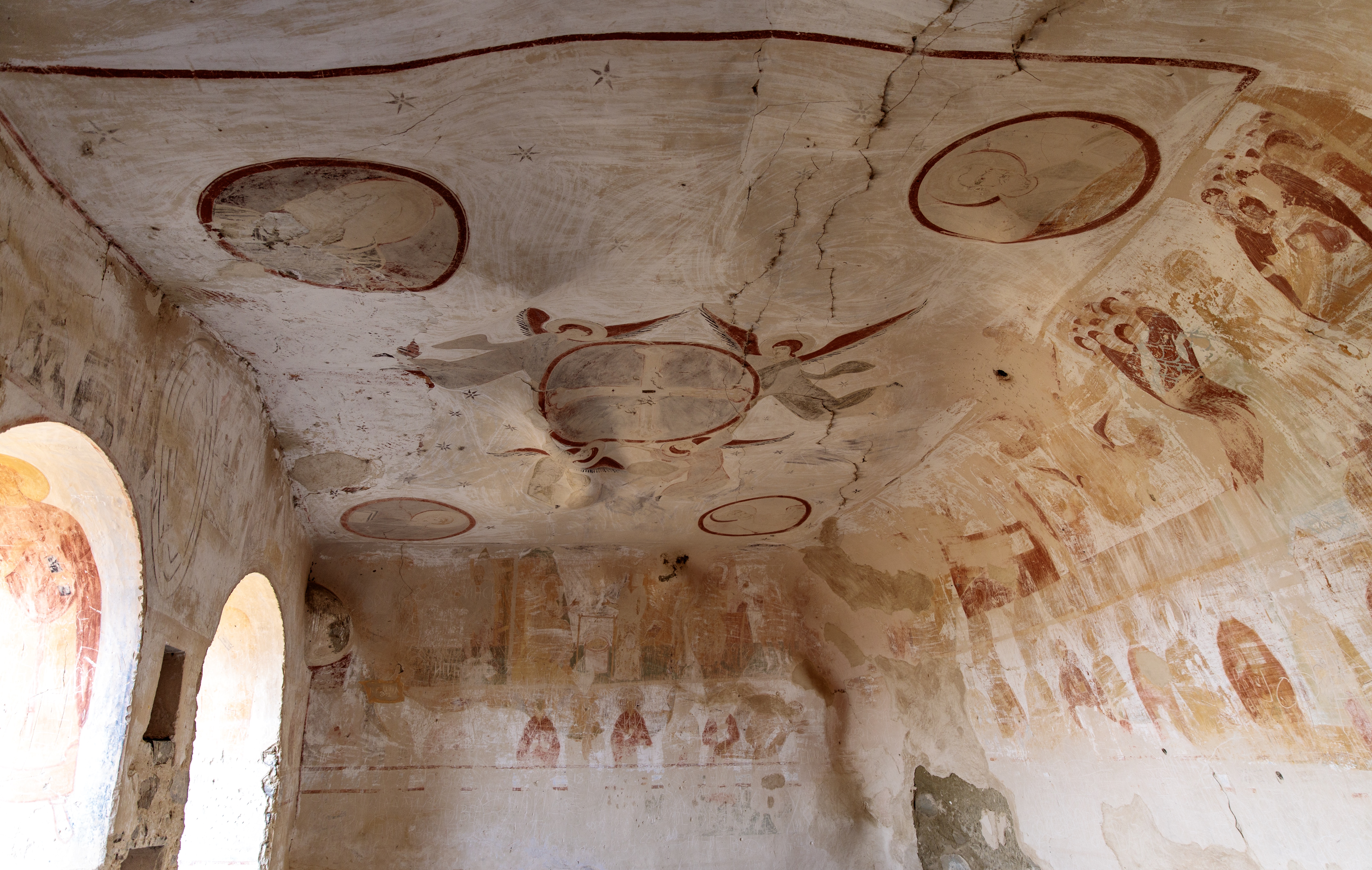 这里的壁画带有很强烈的中世纪风格,非常带感。初看的时候我觉得画风略朴拙,和曾经在卢克索见的古埃及壁画相比远不及其精致逼真。但回头翻照片大图又觉得衣褶和盔甲细节等等都精细到吓人,用色上有点童话风,比如31号的外面看起来就非常的,嗯,小王子配色23333