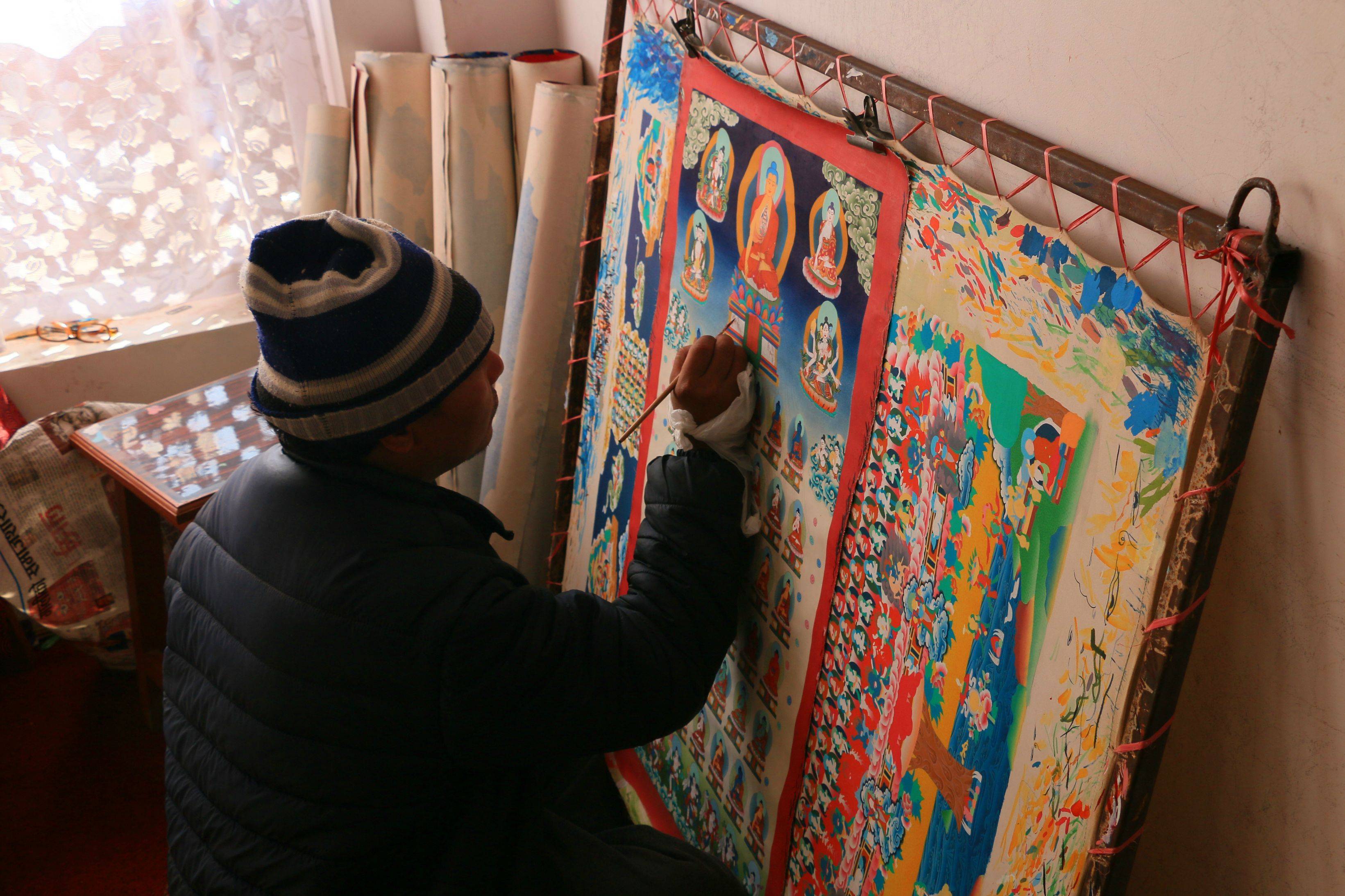 午饭后去看了当地的艺术品唐卡,用矿质颜料在布上所绘的佛像,真心精致美轮美奂~