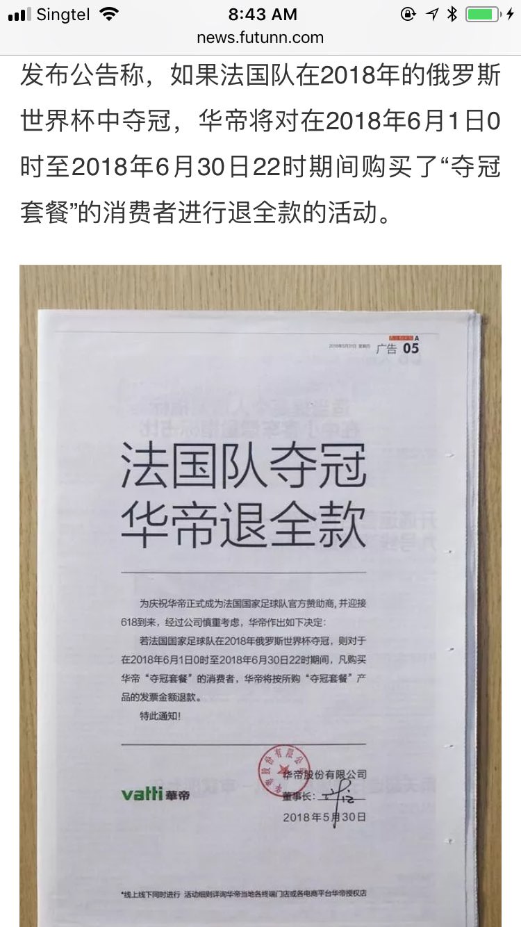 6月多的时候法国夺冠赔率1比8啊当时只要拿1/8的钱出来买法国赢,就是一场稳赚不赔的生意。即使最后法国没赢,亏的也只是1/8买彩票的钱,但是销售量大大提高了。最后胜的还是华帝。