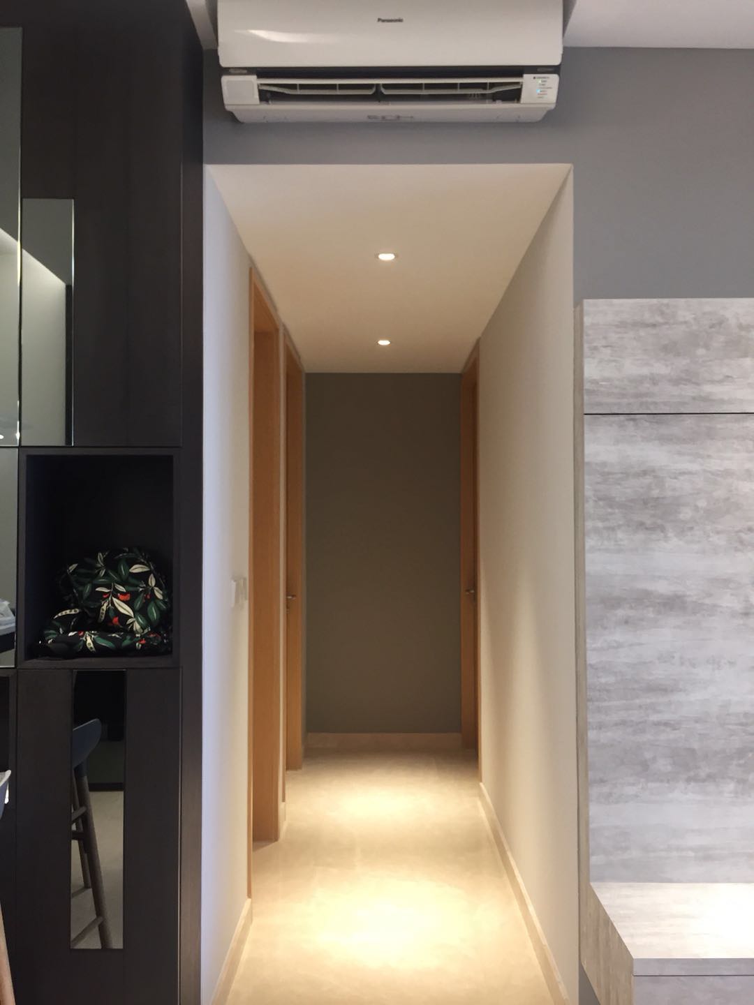 中间出现的小问题:海运时间没掌握好,耽误了电工的进程。。。所以大家有条件还是先安排好海运的时间。实物和设计图有点不像,我自己觉得有几点原因:设计的时候我们还没有房子的具体尺寸,只能按照floor plan来,所以出图的时候比例不是很对,而且新加坡id出图可能都喜欢放大空间,实际房子比设计的显得小。另外,中途我自己和id一起去选木材的颜色和板式,选的和当初设计的不太一样,也没有更新设计图。结果导致我老公看到装好的房子说怎么和设计的完全不一样。。