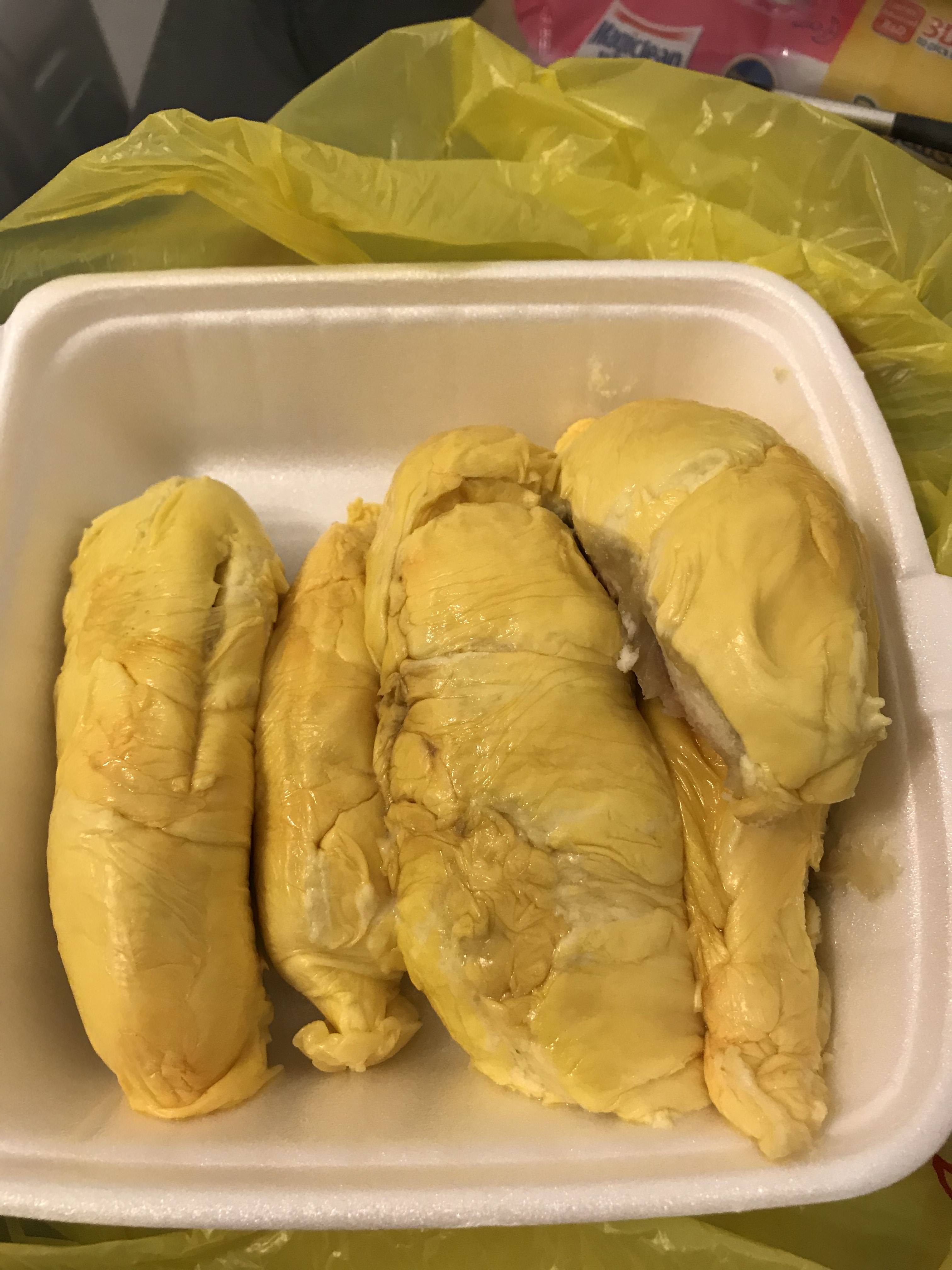 cici0101 • • 28920 次浏览从来都是让老板挑榴莲包好回家吃,对好坏没什么经验,今天买了下图红虾榴莲,回家不仅吃不出甜,还有点像臭又不臭,很难形容的口感,榴莲中间水兮兮的,烂糊糊的,也不知道原来第一口不好是可以整只拿过去换,和队友就拿了一块找过去,老板说要整只拿来…的确感觉理亏,毕竟没有拿整只,也吃了一点点…可真的越吃越觉得难吃…周末刚吃过别家红虾很好吃,太郁闷了…好像我要贪小便宜一样,他卖榴莲这么久了切开不好也不说?以后真的有经验了!
