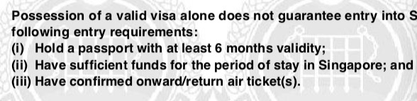 新加坡 旅游签证上的?? 明明写着入境要带好以下文件