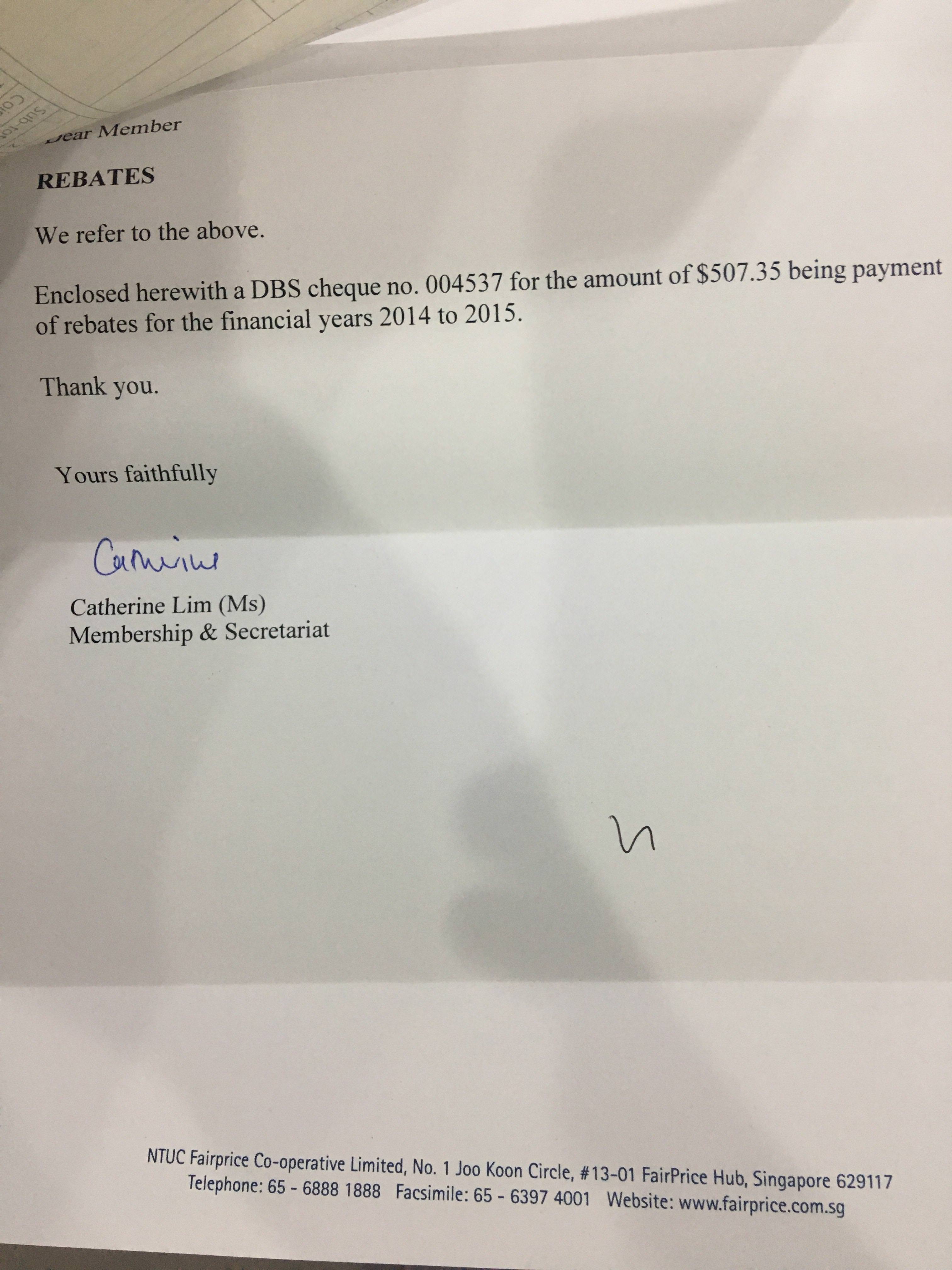 成功拿回了过去4年Fairprice member的rebate,心情美美的