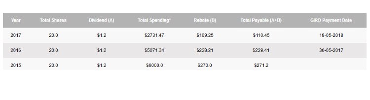 我刚才也在ntuc网站查了我的我这上是写giro rebate了过去的两年,包括了a: dividend + b: rebate = xxx,最早那年没有,我要写邮件去问一问。。 谢谢楼主,大好人!