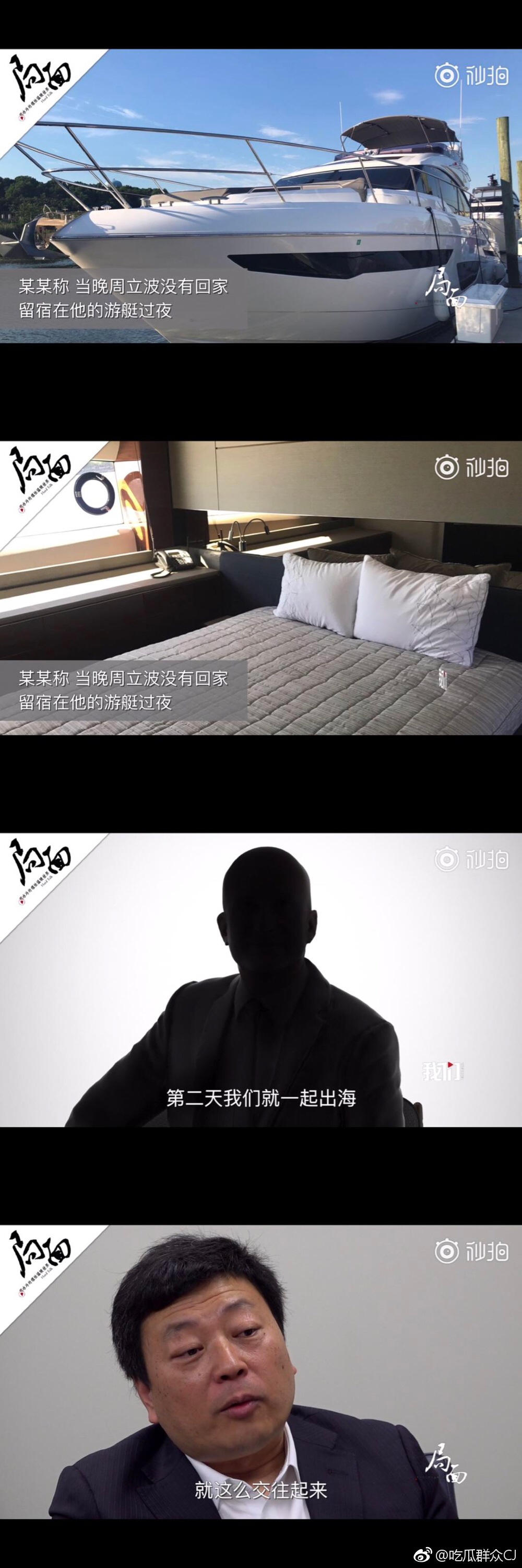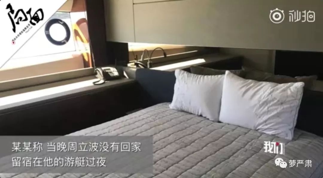 两个人相谈甚欢当天晚上周立波就在游艇过夜,此时节目画面给的是一张床上配俩枕头的。