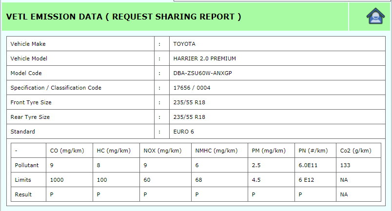你指的应该是AD的Harrier Premium版本, AD的Harrier Premium (Turbo 版本) VES是1万。PI的Harrier Premium是汽油版,我们之前进过所有一直有跟进他的检测数据,现在VES是surcharge 2万,如下图,死在了PM值上面。 在这种VES错位的情况下,平行进口的Harrier Premium相对于AD的价格无法大幅拉开,卖的会不如之前好。当然也不排除将来平行进口的Harrier premium出现更好的检测报告,使VES surcharge降低到1万。