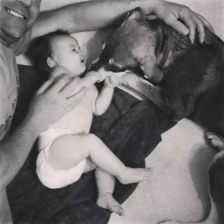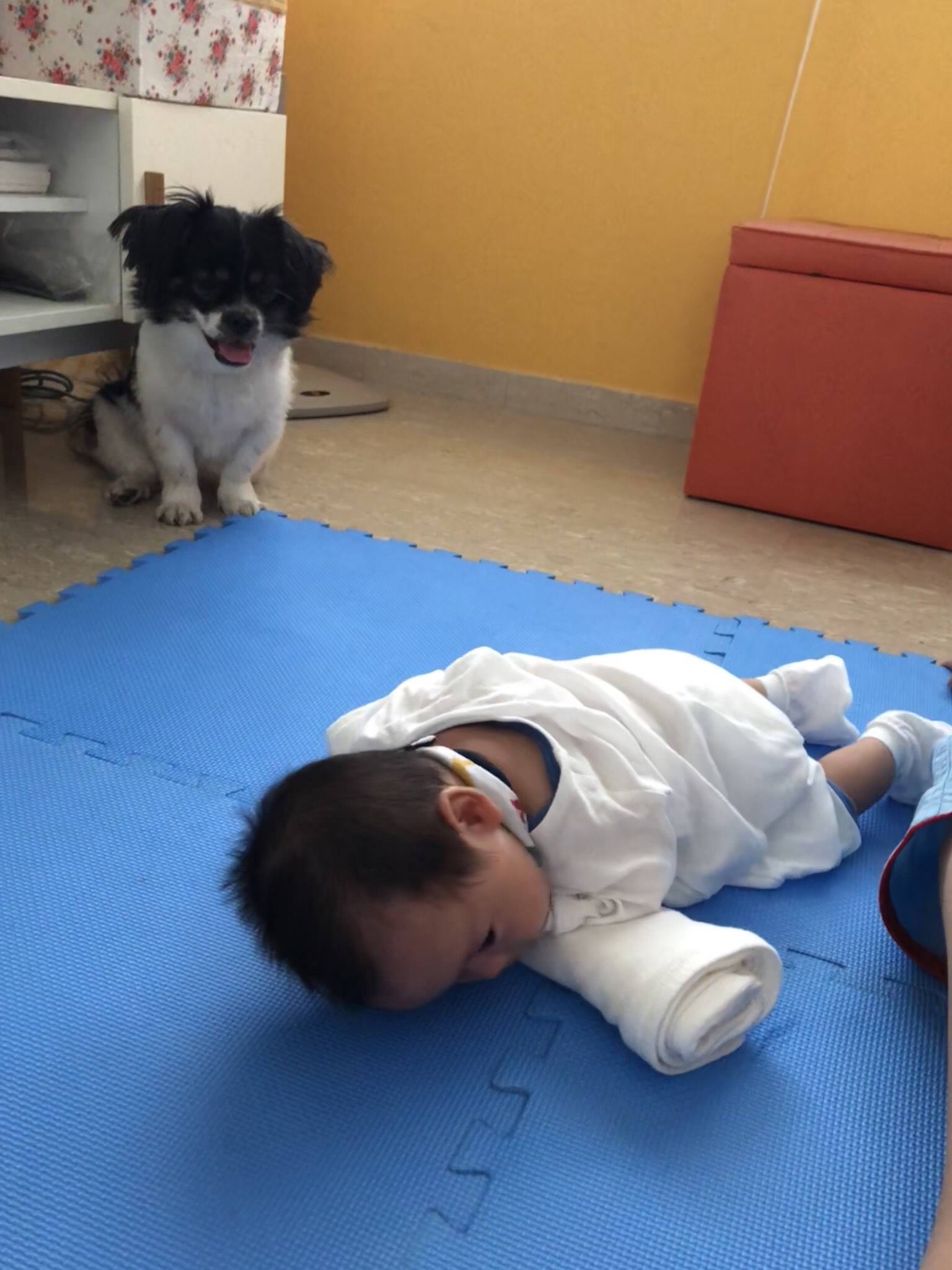 娃和狗狗都好萌~~认识很多有娃的家庭都养狗,有狗的家庭都生娃,娃和狗狗草鸡和谐啊~支持白老师也来一张╮( ̄▽ ̄"")╭