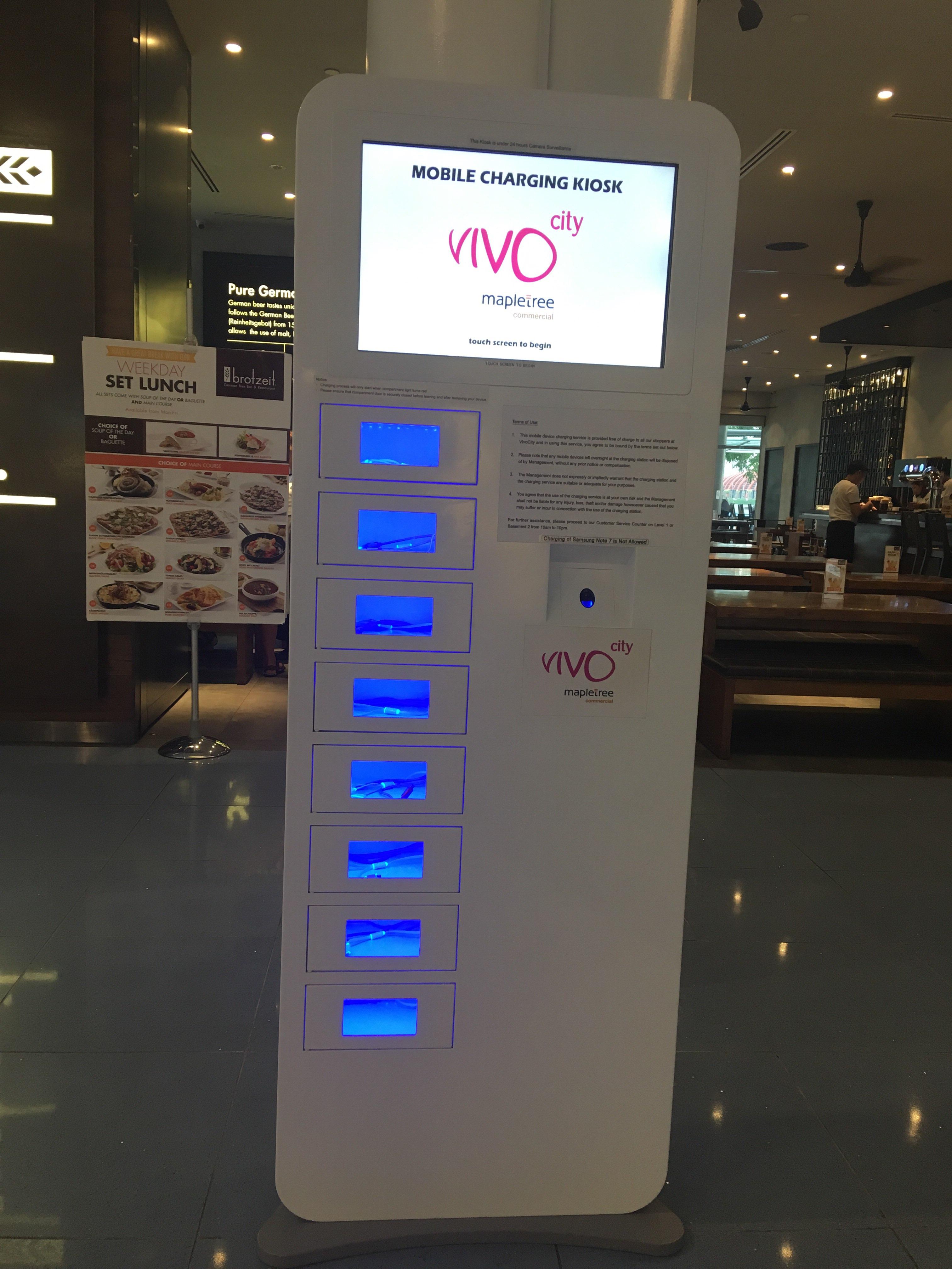 小坡现在有些地方有免费充电的LOCKER放进去充电,然后锁上。