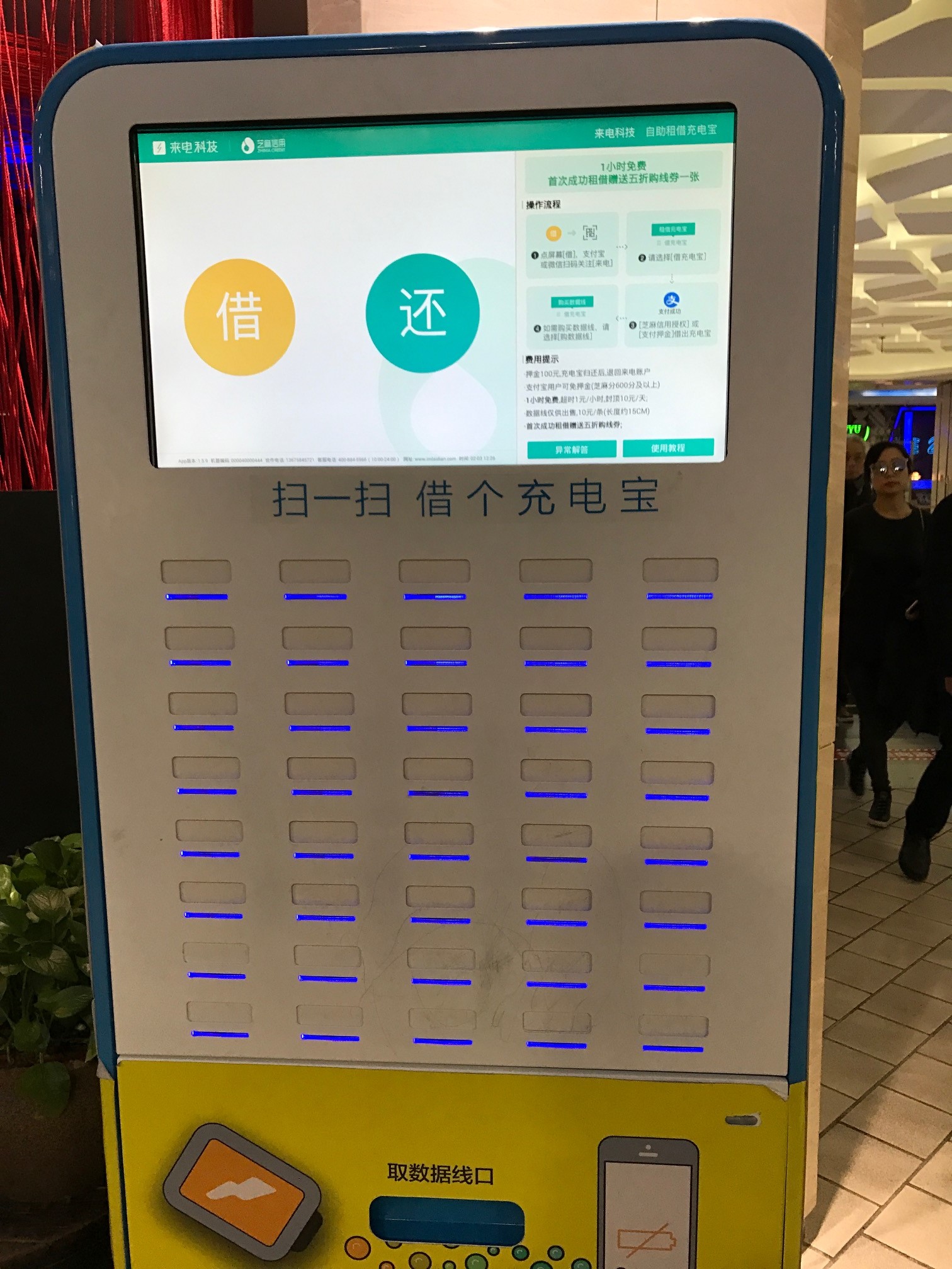 过年去杭州看到这个充电宝租借的机器,看起来还挺有意思,跟大家分享