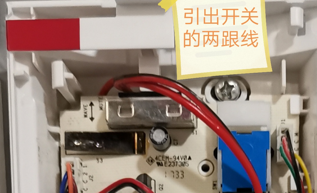 打开家里应答系统。找到对应按钮开关的两个焊接点。引出两条线来。