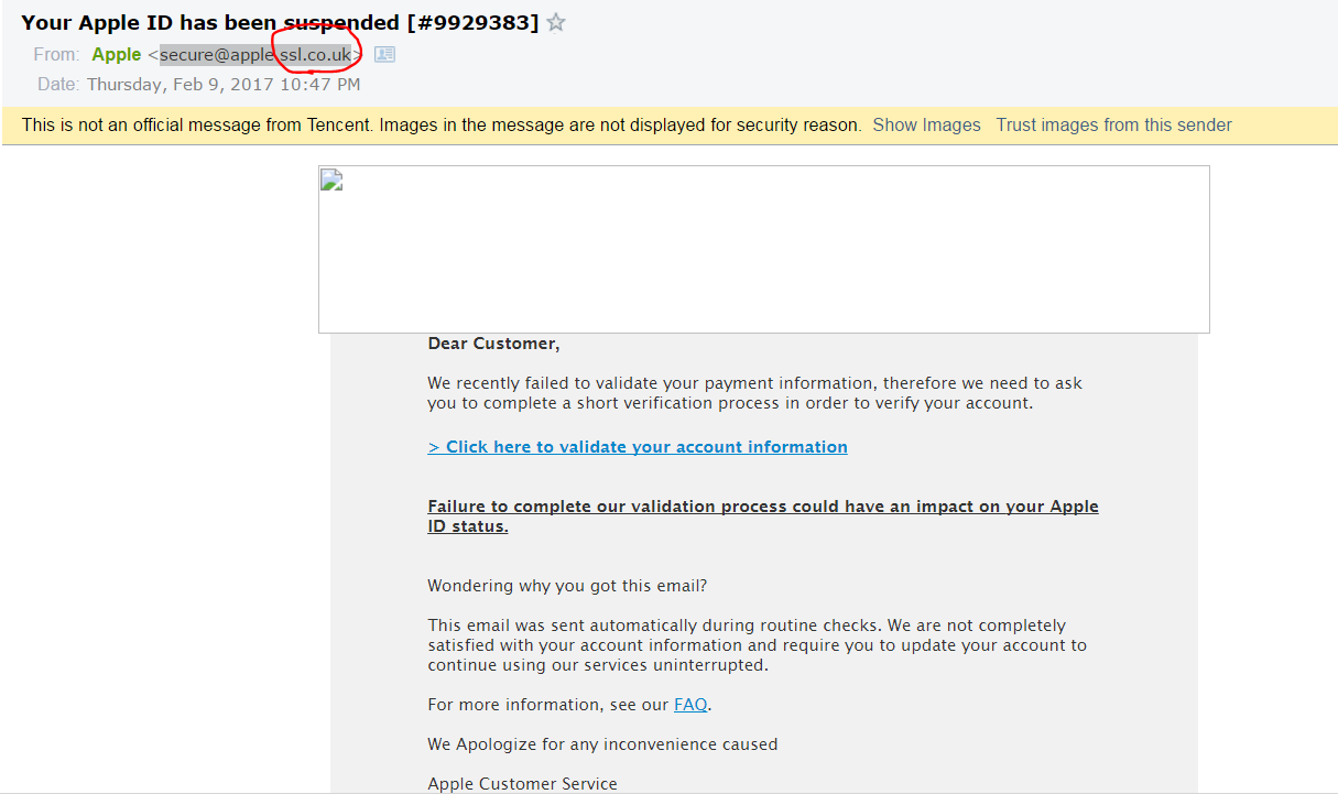 仔细看一下根本不是apple发的邮件, 它真正的域名应该是ssl.co.uk... 这个网站的目的应该就是骗取用户密码神马的,大家要小心~~