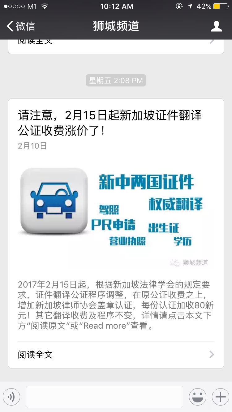 7.中国驾照公证及复印准证、护照、以及你考下驾照后第一次入新加坡盖章的那一页、还有中国身份证;(注意:我问了很多家公证处,最后选择在用狮城频道公众号在网上公证,虽然略贵一些,但很方便,毕竟所有公证的地方拿取公证件时都是工作日,我需要工作没时间,就让它帮我邮到了我的工作单位)