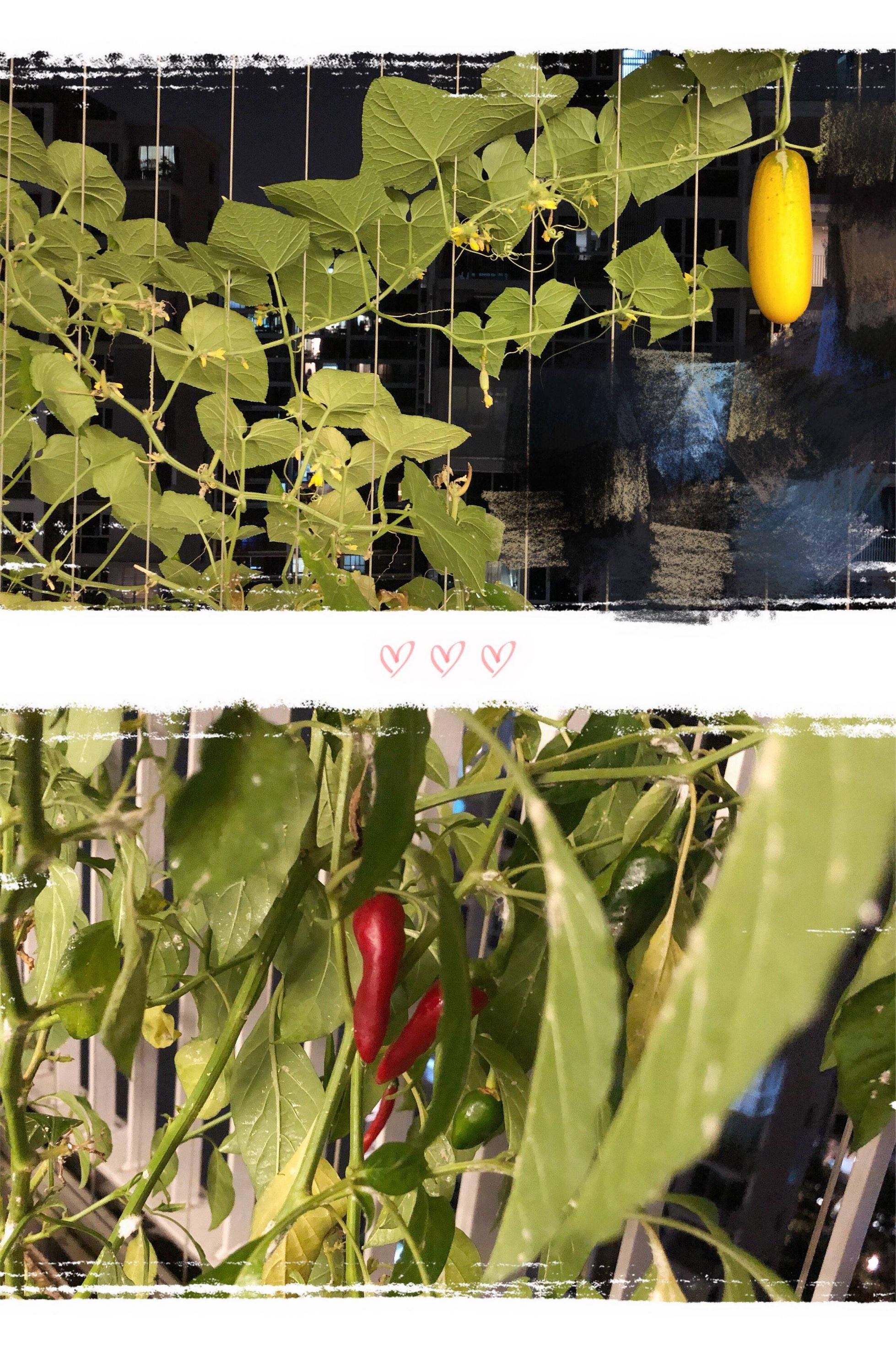 各种花养不活随便撒了点黄瓜辣椒种子在花盆,再在升松买了点蔬菜水果专用的有机肥料撒上几颗,长势惊人。