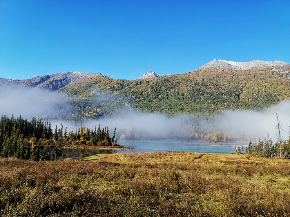 我跟的是领袖户外的团建议找那种在景区里多住几天的团,不然每天从山外搭景交车一个多小时进山还是非常辛苦的,可能会错过欣赏晨雾的时间。进到禾木喀纳斯,还要再搭车去景点,还是蛮浪费时间的