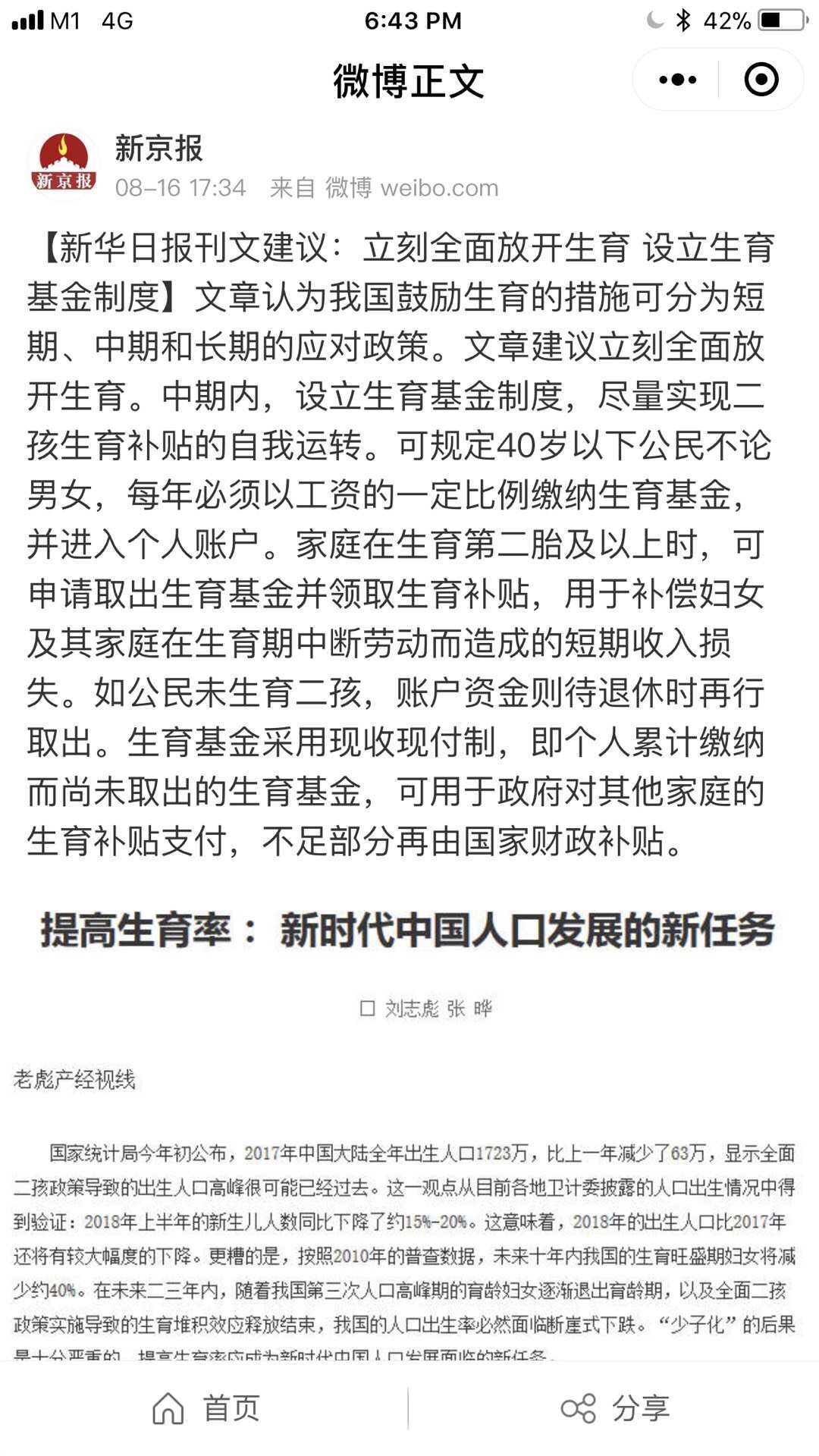 2016年,全国实施全面二孩政策,但2017年中国全年出生人口1723万,比上一年减少63万,降幅为3.5%。全面二孩政策并未改变出生人口下降的态势。而2018年上半年,很多地方的“二胎效应”不断减弱,多地人口出生数量走低,则反映出目前老龄化加剧的严峻性。
