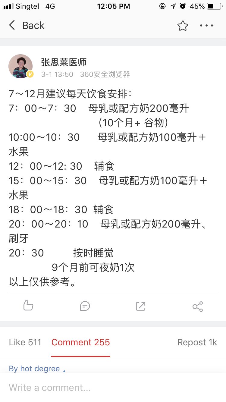 看娃……自从开始加辅食,感觉就日日头疼怎么弄schedule。尤其是六个月到一年这段时间辅食量逐渐增加,奶量需要逐渐减少,喝奶次数也逐渐减少,感觉刚调好了一个日程,过一两个月又改了。