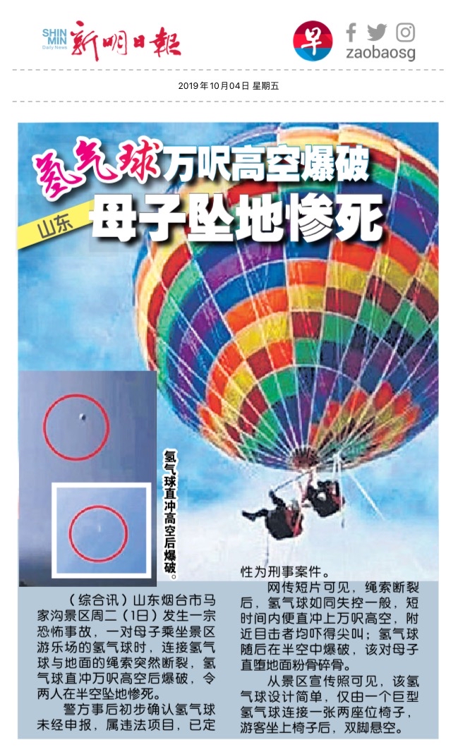 好惨而且新闻里说,现在各景区的气球项目还很多。我看到这个消息是在一个朋友群里,然后群里有个人说他正好在另外一个地方的景区排队要上氦气球,还发了视频过来,于是大家纷纷劝他。接下来估计全国游乐性气球项目都要安全整顿了。