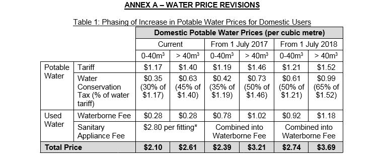 "Water prices were last revised in 2000, almost 20 years ago. We need to update our water prices to reflect the latest costs of water supply," Mr Heng said in the 2017 Budget speech in Parliament.