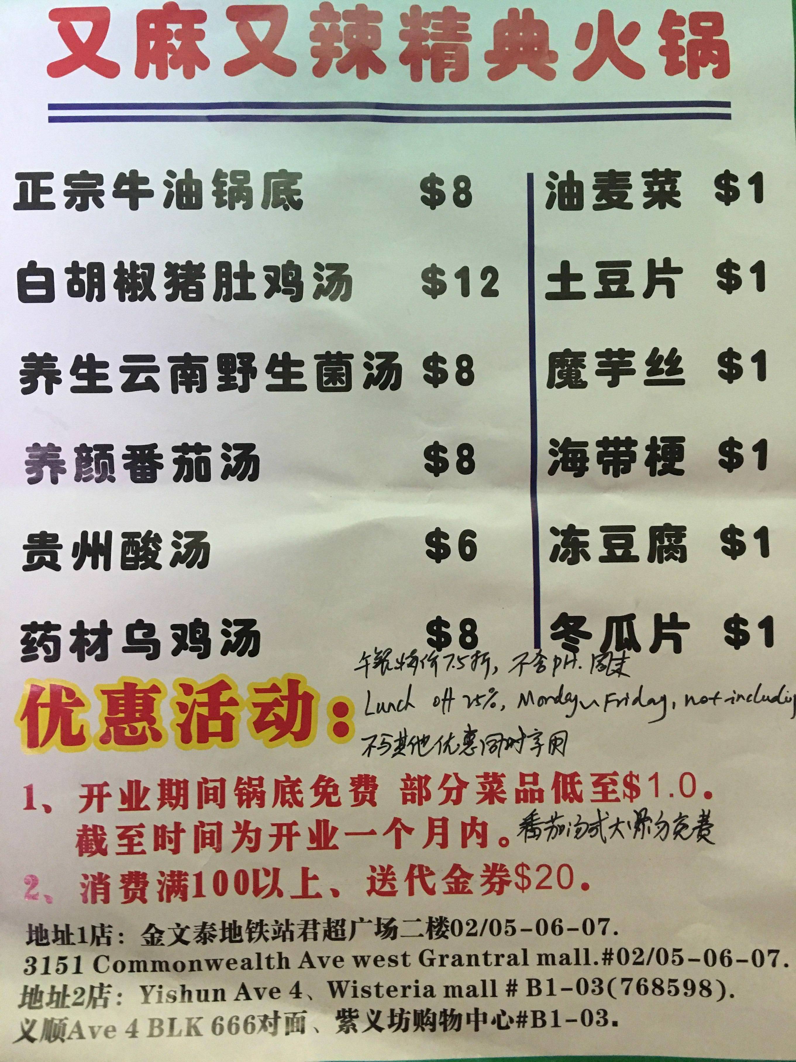 海报上说是一个月但我觉得一直会有优惠,感觉人气不旺,可能是因为没有在Clementi Mall里面,很多人不知道这家火锅店。