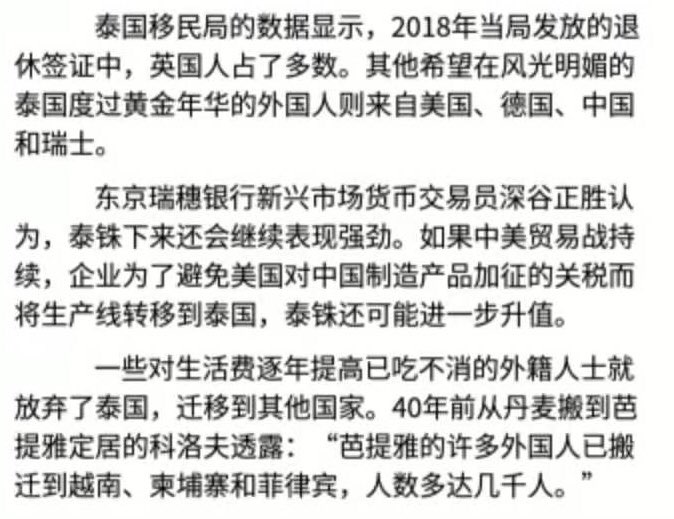 泰国很适合英国和北欧人退休的那里的人一生都缺光照,晚年享福可以照个够,但是曼谷这些地方他们也是退休不起的,泰国三线城市估计还可以。
