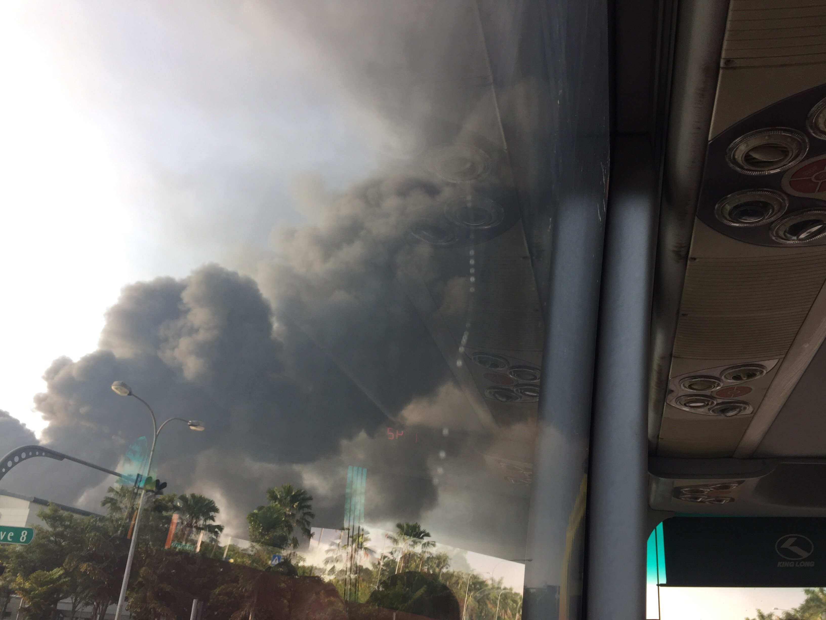 我坐在车里还以为是乌云要下大雨~后来一看不对,应该是工厂失火了