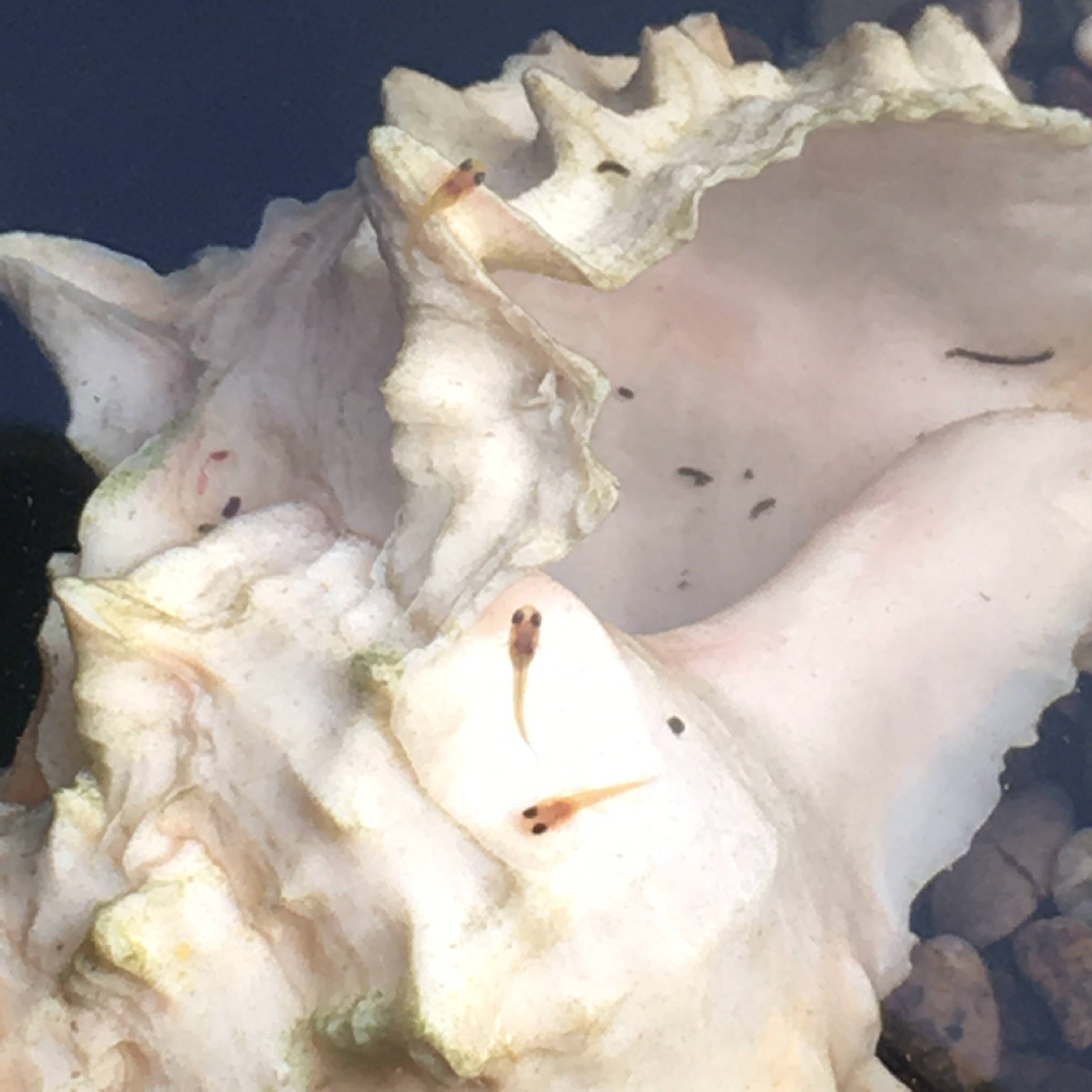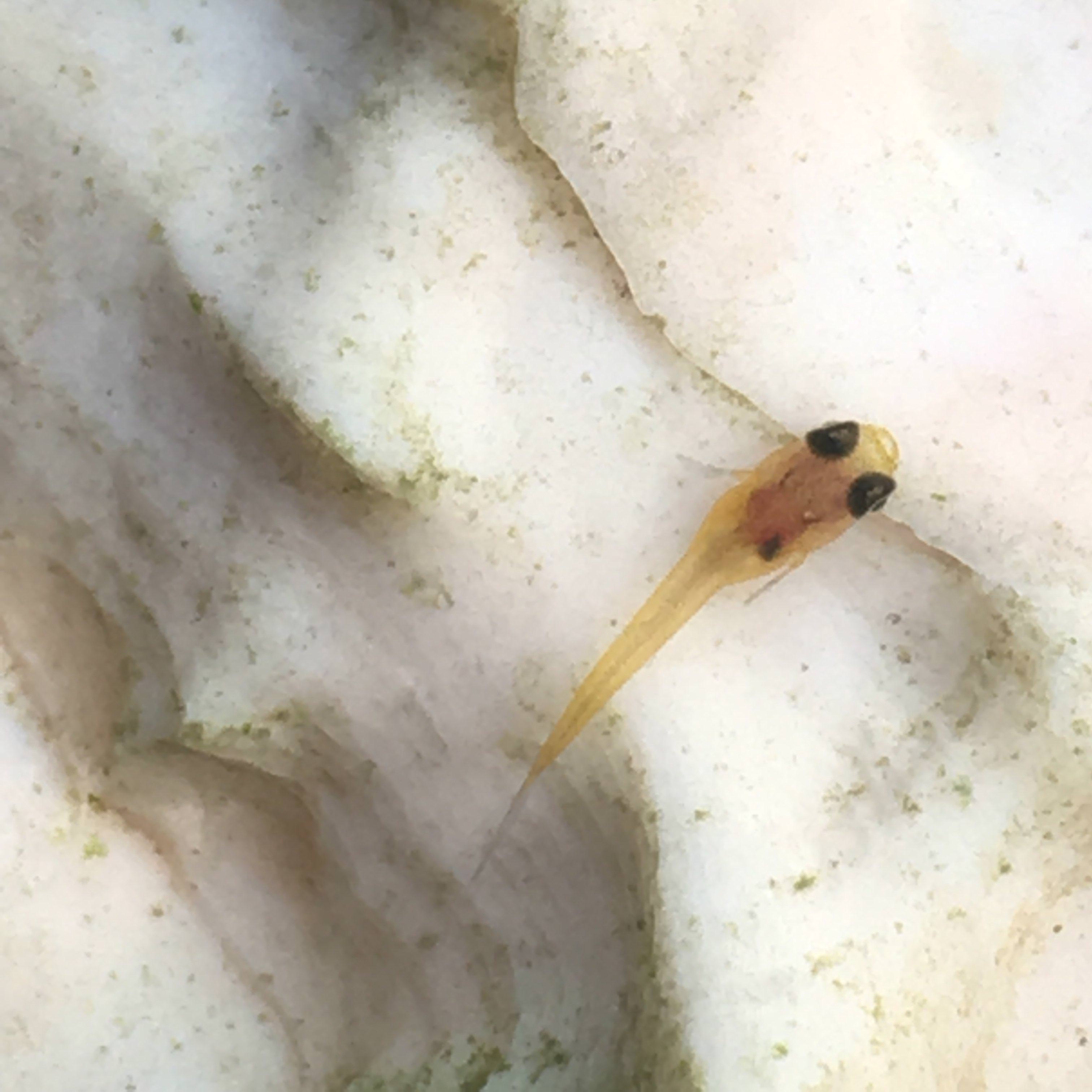 小鱼长大些了现在明目张胆在大鱼前边游来游去,之前出生两天时自我保护意识很强,只在大鱼游不到的地方藏着。