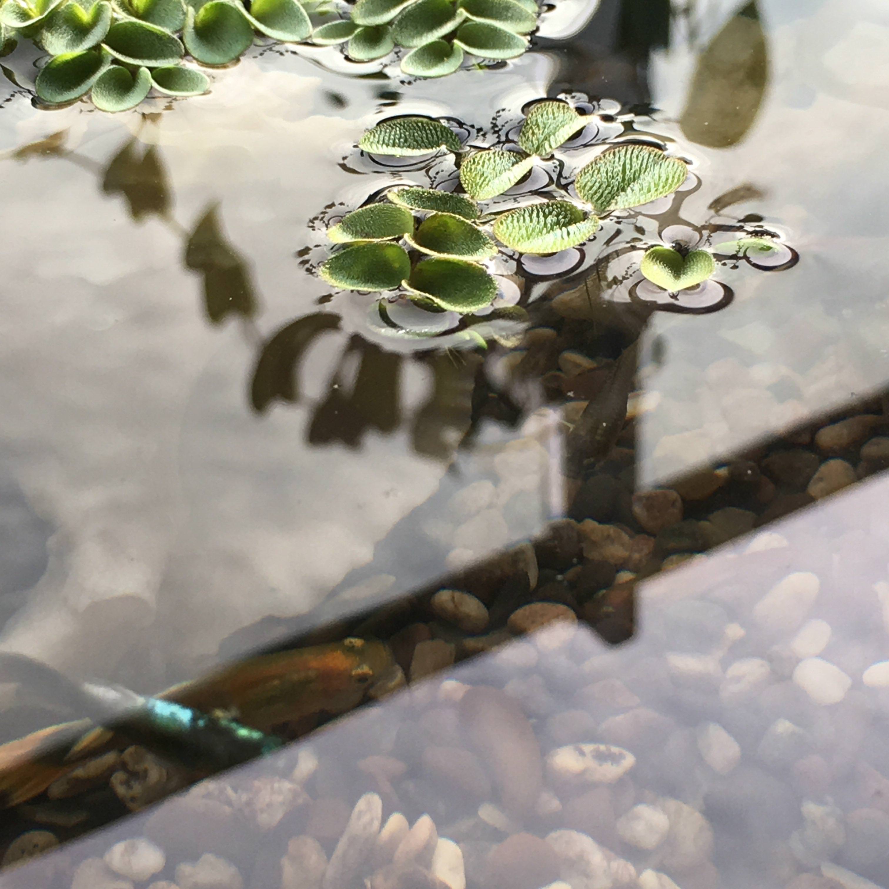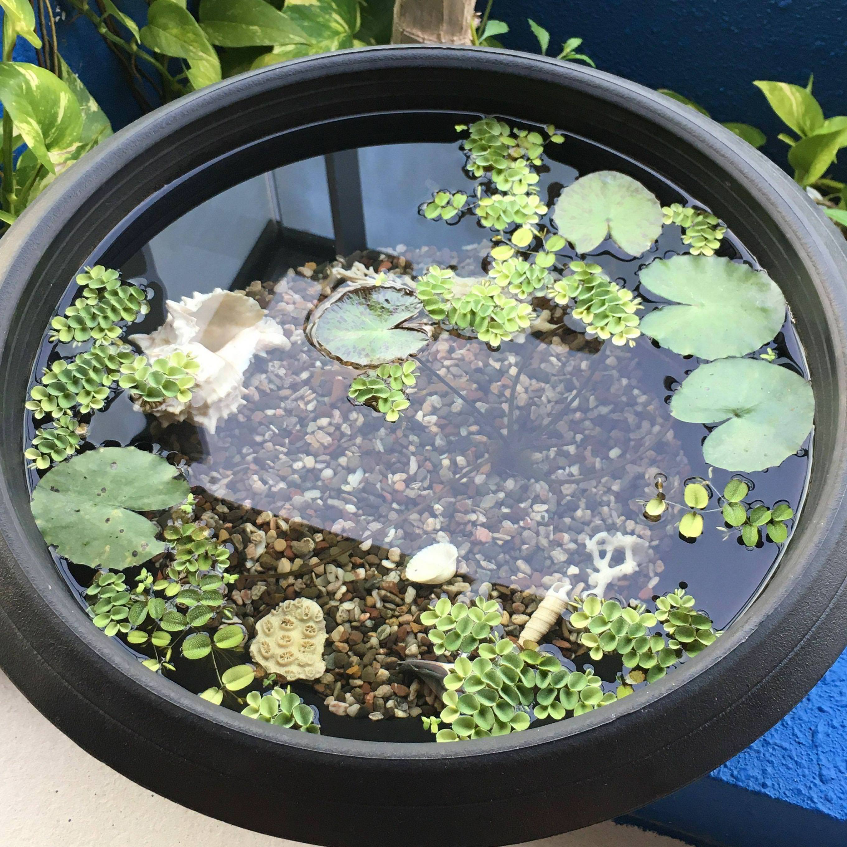 总结就是,露天,阳光充足,一个礼拜花稳定鱼稳定后,除了加水剪枝外没有额外照顾,鱼也不用喂,不用换水。