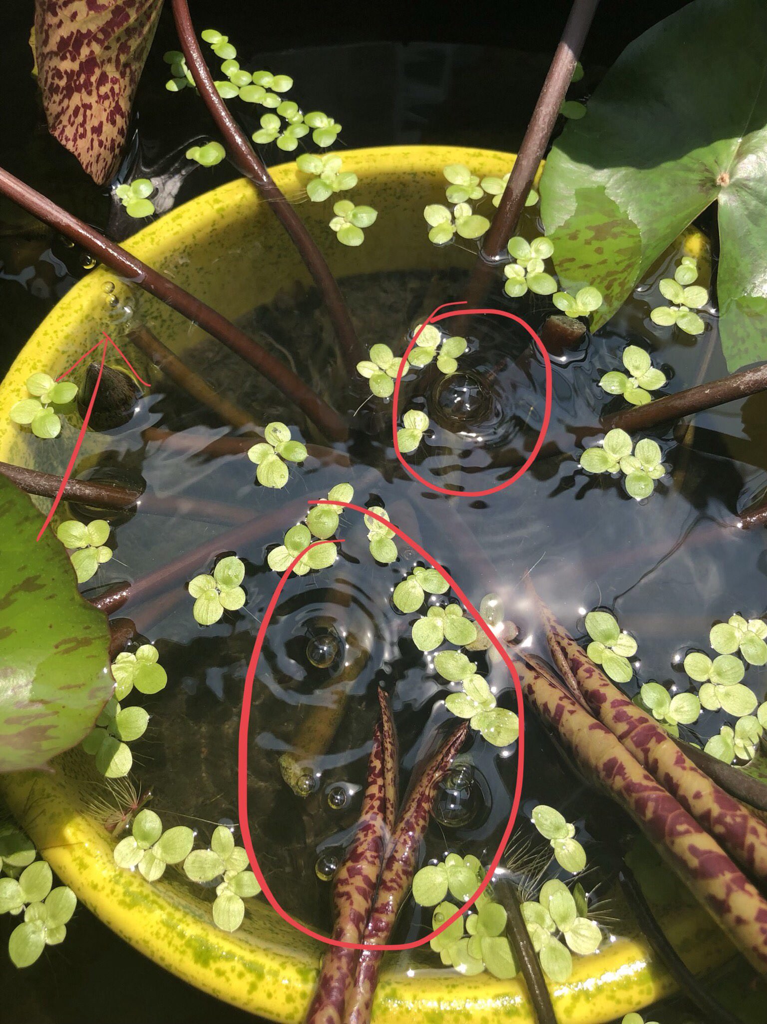 对的,我换掉了。因为外盆不够高你和我一家买的吧?快去买鱼,Elaine家的自带蚊子和虫。花是好花,但原生池塘估计环境比较糟糕。来的前一个礼拜你好好观察照顾噢