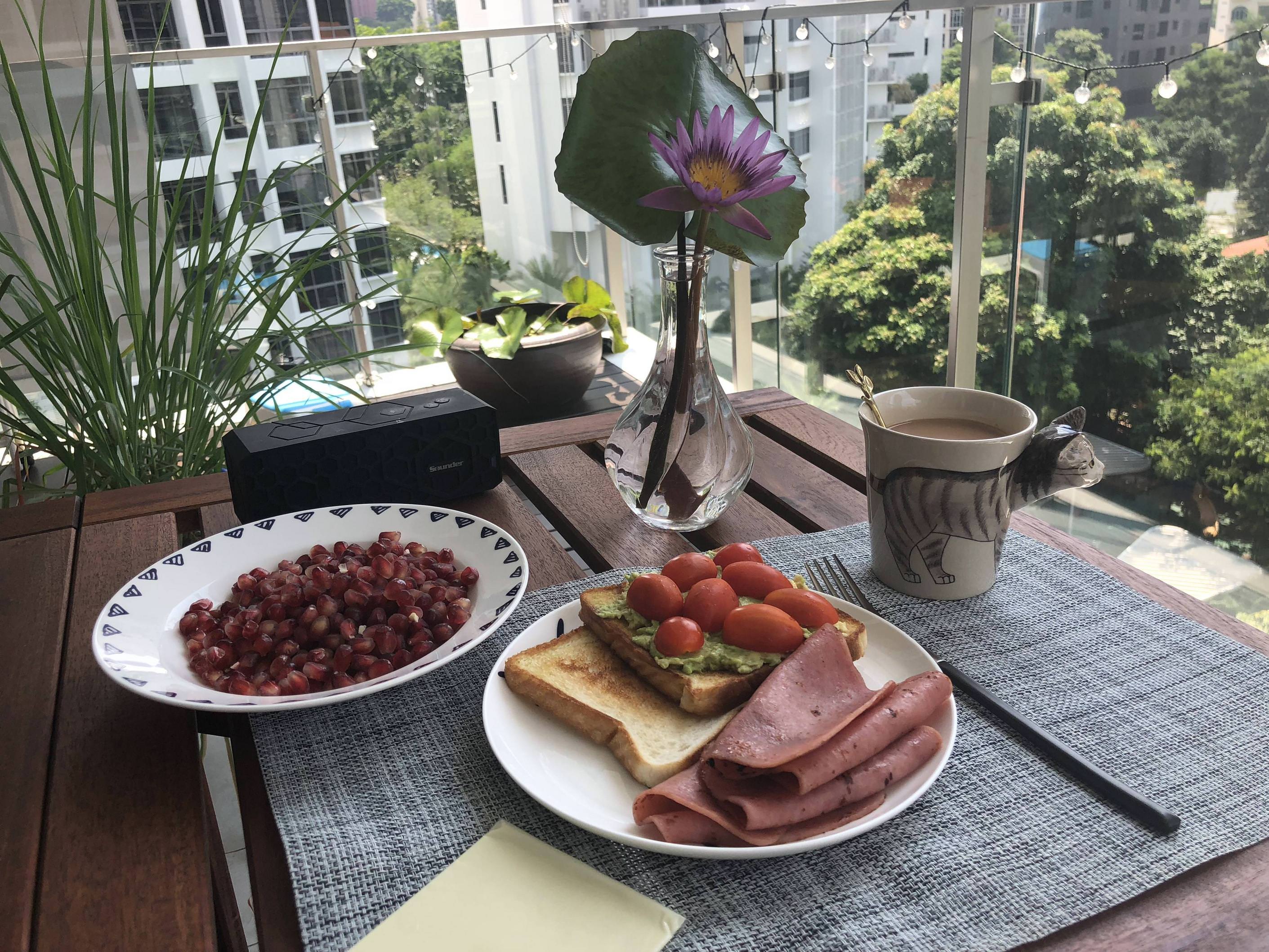 当时在Carousell上看了很多二手缸,价钱贵不说,不漏水又尺寸合适的缸不容易找。本来想要60cm高的,后来想想缸太大装满水就会过重,放在阳台怕怕的。花商给我送货的那天去仓库里给我挖的,我是特别满意这个陶缸,颜色和质感都出奇地合心意。