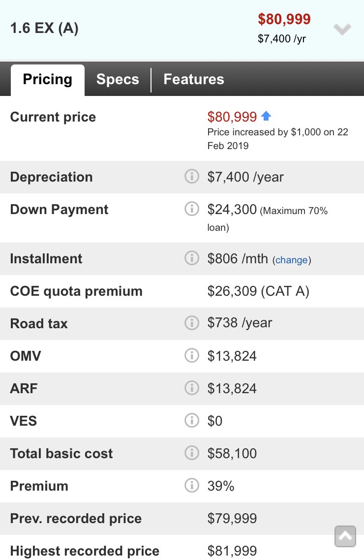 我coe 36000的时候买的kia k3基本款可是现在coe 26000了,cerato 2019居然还涨价了。我买的73999送皮座,carplay,cctv,其实和EX差不多,现在EX居然80999了,是因为新款比旧款好很多吗?